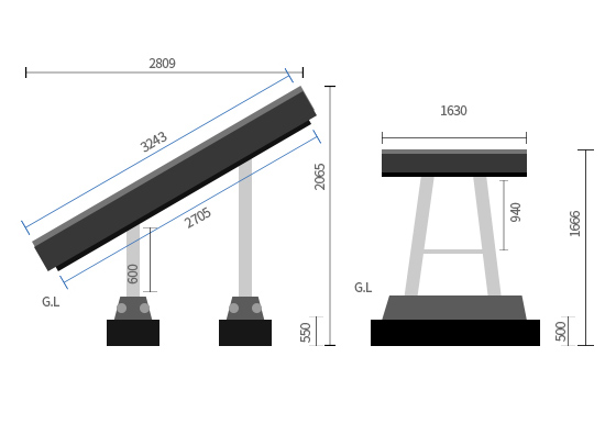 태양전지 어레이용 가대 및 구조물 단면도
