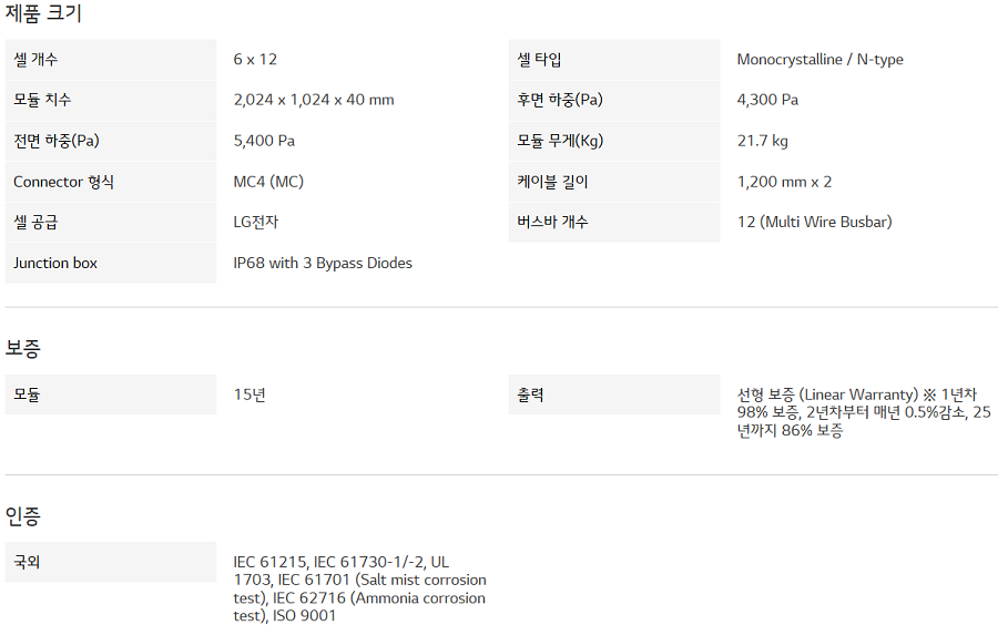 [LG전자] LG태양광 초고효율 모듈(N타입)395N2W