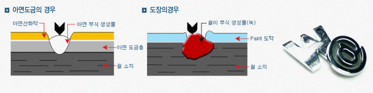 특히 희생적 방식특성이 있는 아연이 철과 합금층을 이루며 견고히 부착되기 때문에