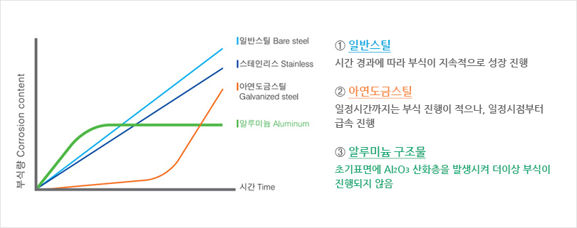 수명- 알루미늄 구조물 25년 이상