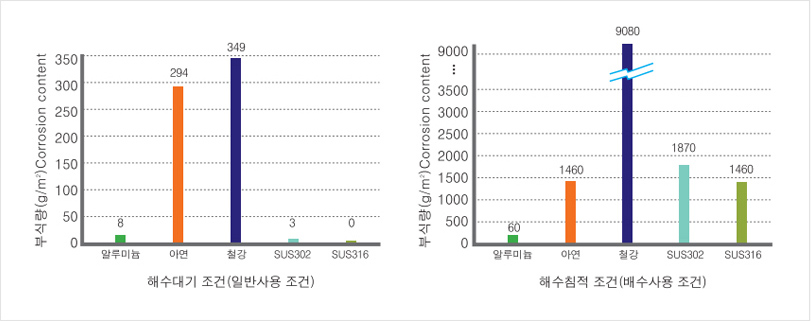 - 녹과 부식이 전혀 발생하지 않는다.