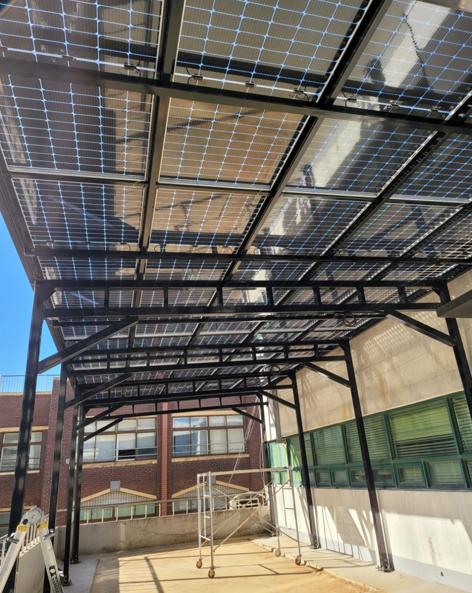 오늘은 태양광파고라를 경기도 고양시에 있는 빌딩에 설치해드렸던 현장입니다. ![]() 회사 대표님께서 건물 옥상에 직원들을 위한 휴게공간으로 사용하기위해 썬룸도 알아보시고 렉산도 알아보셨는데 모두 불법건축물이라 합법적인 태양광파고라를 설치하기로 결심하시고 저희 유튜브를 보시고 연락을 주셨답니다. ![]() 대부분은 가정용이 아닌 경우라면 전기발전을 위해 태양광설치를 많이들 하시는데요. ![]() 이곳 대표님은 전기발전보다도 직원들이 편하게 야외에서 눈, 비, 햇빛을 피해서 쉴 수 있는 공간을 만들어주고싶어 하셨답니다. ![]() 면적이 40평 정도로 꽤 넓은터라 상당한 양의 양면그라스모듈과 분체도장한 구조물이 투입되었답니다. ![]() 일반 아연각관이 아닌 분체도장한 구조물이기에 녹이 슬지 않으면서도 오랜 동안 내구성이 짱짱한 것이 사실이고요. ![]() 기둥과 기둥사이는 트러스공법을 이용해서 강풍에도 끄떡없는 안전한 태양광파고라를 만들고 드렸답니다. ![]() 또 상단에 얹는 양면그라스모듈은 단면에 비해 전기발전양이 월등히 많은데다 빛이 투과되어 파고라 아래 쪽에서도 딱 적당한 조도로 즐길 수 있답니다. ![]() 특히나 양면그라스모듈은 방수작업이 생명과도 같아서 물이 한 방울도 들어갈 수 없도록 꼼꼼하게 작업을 해줘야합니다. ![]() 오랜동안에 걸쳐 작업을 한 터라 단 한방울의 눈, 비도 허용하지 않고 완벽하게 방수작업을 해드렸답니다. ![]() 태웅솔라는 오로지 합법적인 태양광시설물인 태양광캐노피나 태양광파고라, 태양광주차장등을 만들기위해 오랜 기간, 그리고 매순간 노력합니다. 볼트하나 조이는 데에도 전문성과 노하우를 가지고 진행하고 있으니 부담없이 문의주세요~ 문의 1855-4688 / 010-9700-3445 https://blog.naver.com/taewoongsolar/223058493044 https://www.youtube.com/channel/UCNohkhKQFvfNqZwaIFtpVuw |
