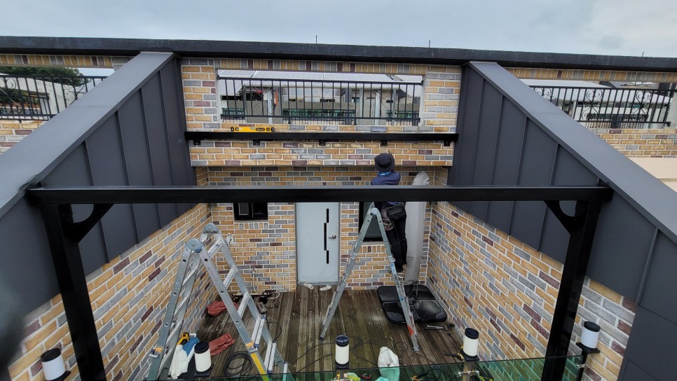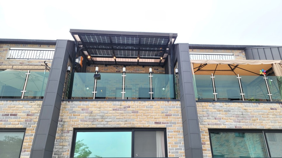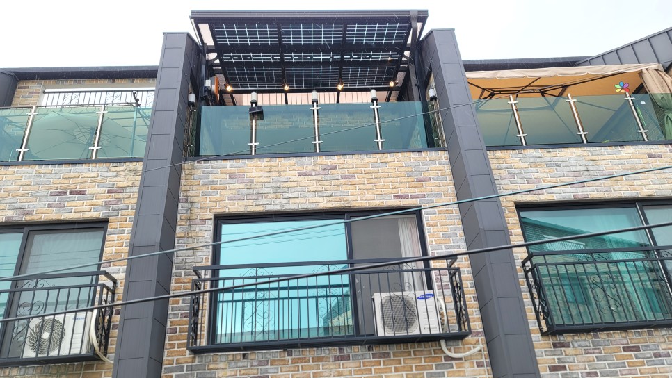 이번 현장은 타운하우스 꼭대기층에 태양광캐노피를 시공해드렸던 현장입니다. ![]() ![]() ![]() < 3D 동영상 > 기존에 옥상에도 3KW 정부보조태양광이 있었지만 신축빌라 옥상 테라스를 무언가로 꼭 덮고 싶으셨던 건축주분의 요청으로 설치를 결정하셨답니다. ![]() < 시공 후 > 이렇게 테라스에 어닝이나 렉산캐노피를 시공하게되면 불법건축물이 되는 것을 잘 아시는 건축주분이 설치를 요청하셨답니다. ![]() 렉산캐노피나 어닝을 설치하는데도 돈이 들지만 불법건축물이 되면 이것을 철거하는데도 역시 돈이 들기에 정말 주의하셔야 하네요. ![]() 그렇지만 태양광캐노피의 경우 건축법의 영향을 받지않는 발전시설이기에 합법적인 시설에 해당합니다. ![]() 또 저희는 국내최초 방수태양광업체로 폭우나 눈, 비에도 매우 안전한 태양광캐노피를 제작하고 있습니다. ![]() 구조물자체가 고온분체도장을 해서 20~30년이 지나도 칠이 벗겨지지 않고 빗물받이를 포함한 모든 구조가 매우 안정적으로 설계가 되어있습니다. ![]() 또 양면그라스모듈의 경우 양쪽으로 전기발전이 되는터라 전기발전양이 월등히 많아 전기요금 걱정없이 지내실 수 있습니다. ![]() 또 설치 전에 실측을 토대로 3D 동영상을 제작해 드림으로써 건축주분들이 최종 컨펌을 한 후에 제작에 들어가고 있습니다. ![]() 태양광캐노피 아래에 레일등이 달려서 매우 야간시간대나 날씨가 좋지 않을때 충분히 활용이 가능한 것 역시 장점입니다! ![]() 태웅솔라는 국내최초 방수태양광업체로 전원주택부터 신축건물 등에 태양광파고라, BIPV 등을 설치해드리고 있습니다. 전국 어디나 무료견적, 무료상담이 가능하니 편하게 문의주세요~ 문의 1855-4688 / 010-9700-3445 https://blog.naver.com/taewoongsolar/223058493044 https://www.youtube.com/channel/UCNohkhKQFvfNqZwaIFtpVuw |