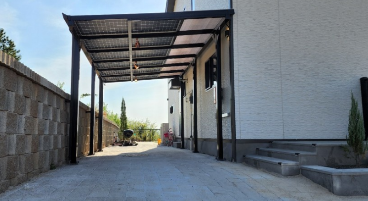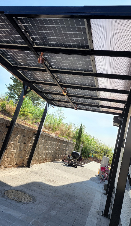 오늘 설치사례는 요즘 전원주택에서 많이 선호하시는 주차장 카포트입니다. 아파트의 경우는 지하주차장이 있어서 문제가 없는데 전원주택의 경우는 차고가 없는 경우 365일 밖에 주차할 수 밖에 없는터라 비나 눈을 막아줄 지붕이 꼭 필요한데요. ![]() 주택가의 경우도 차량을 매일 밖에 세워두긴 하지만 전원주택의 경우라면 아무래도 공간적으로 여유가 있다보니 또 요즘은 차량도 집처럼 소중하게 관리하고싶어하는 분들이 많다보니 차량을 제대로 보관하고 싶어하시는 것인데요. ![]() 그렇다고해서 집을 짓는데도 건폐율이나 용적율등으로 인해 여러번 관할부서와의 어려움이 있으셨던 분들이라면 건축한계선 등등으로 인해 섣불리 주차장시설물에 지붕을 얹는 것이 쉽지 않다는 것을 아실것입니다. ![]() 그런 이유로 태양광카포트 즉, 태양광발전시설을 이용한 주차장지붕을 만들면 건축법에 전혀 문제가 없을뿐더러 전기료까지 절감되고 방수는 물론 시각적인 부분도 매우 세련된 공간이 탄생합니다. ![]() 태웅솔라에서는 자체적으로 공장을 운영하여 분체도장시설을 갖추고 대부분의 구조물을 도장하여 현장에서 조립합니다. ![]() 여기에 양면그라스모듈을 사용함으로써 비나 눈에 대해 완벽 방수가 가능하며 양면모듈로 빛은 투과시켜서 답답하지않은 지붕이 되게 합니다. ![]() 이렇게 함으로써 소중한 차는 태양광 카포트에 잘 보관할 수 있고 전기요금도 줄여주고 건축법 역시 문제가 안되는 그야말로 일석삼사조의 시설물을 완성할 수 있네요! ![]() ![]() 태웅솔라는 직접 공장을 갖추고