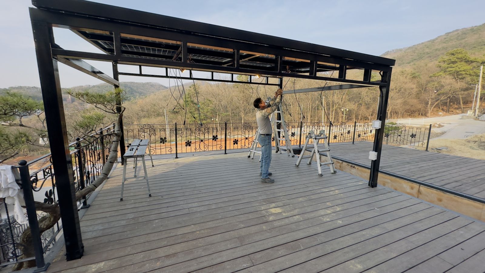 양면 그라스모듈 아래에 최고급 레일 등을 설치해서
