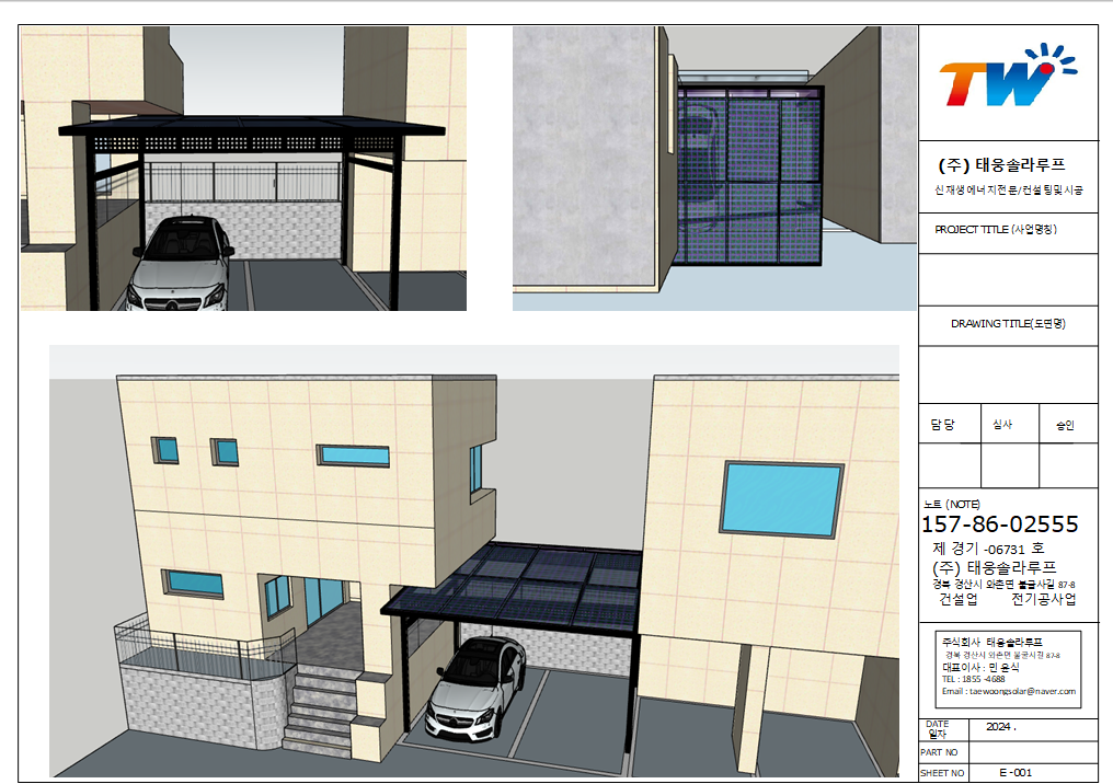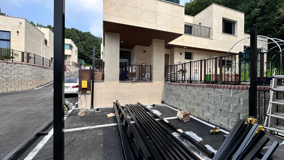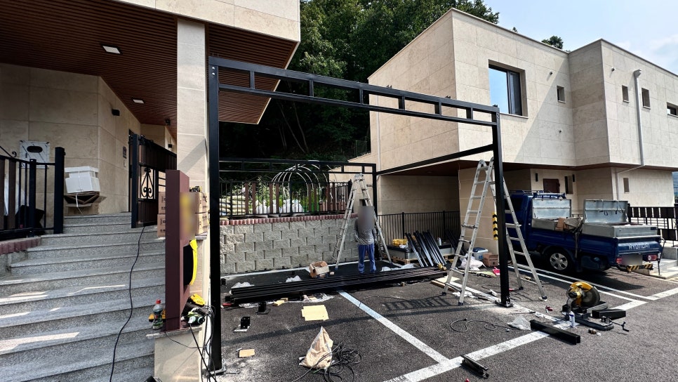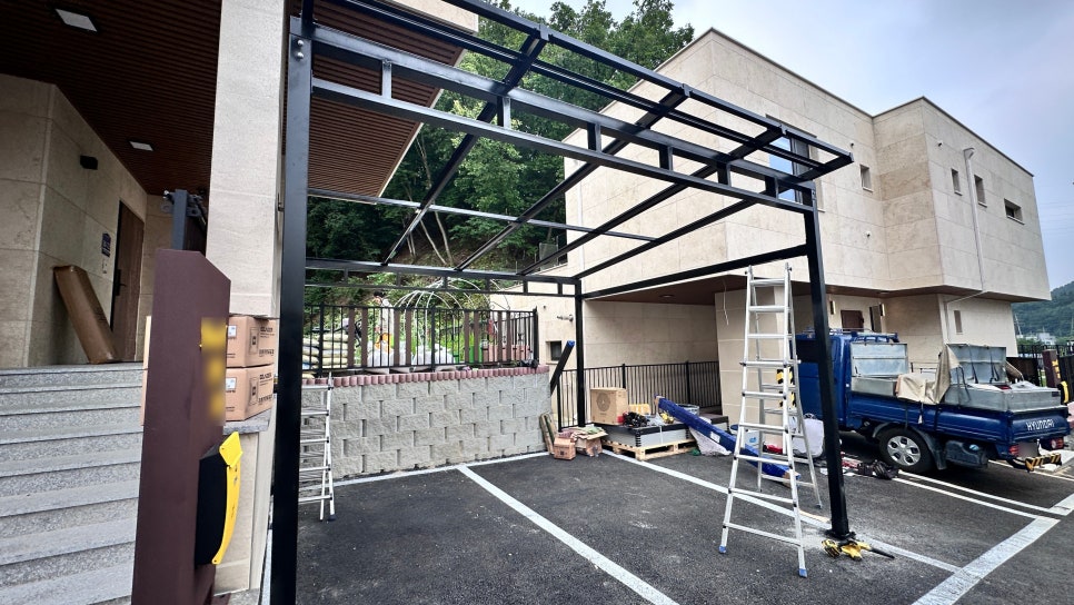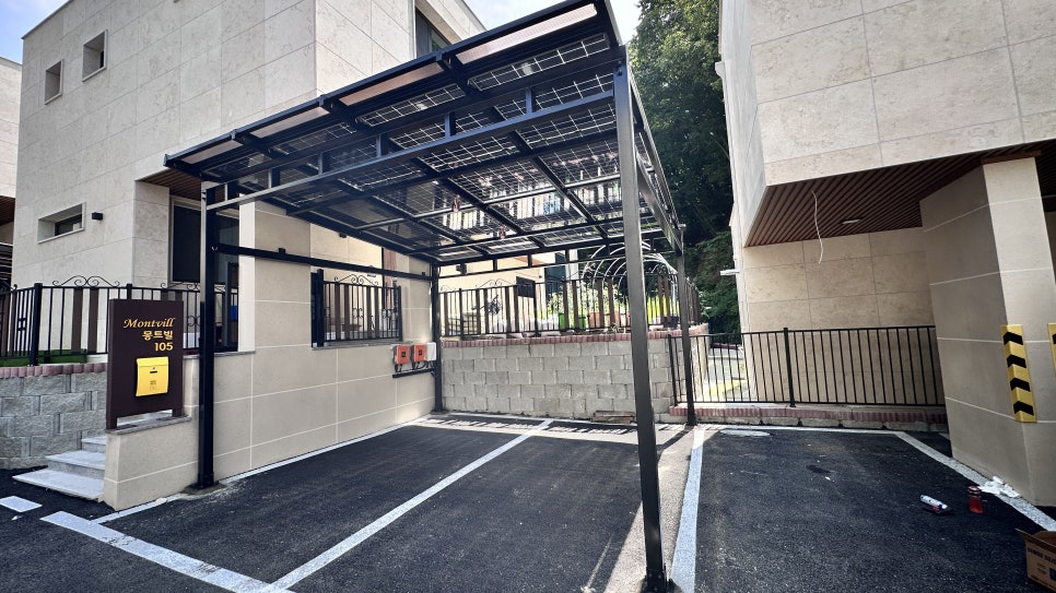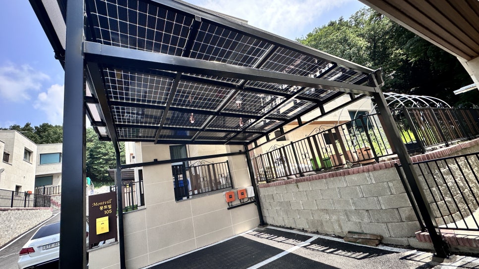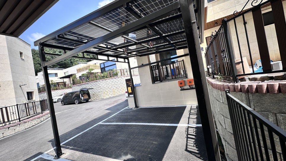 폭염이 이어지는 요즘, 전기제품 사용이 사상 최고를 기록하고 있습니다. 전기세 걱정이 많아지는 이때, 가정용태양광 설치로 전기세도 아끼고 내 차를 뙤약빛과 폭우에서부터 벗어나는 방법으로 태양광주차장을 추천합니다. 경기도 이천시의 전원주택 단지는 아주 세련된 건물모양을 하고 있었습니다. 야외주차장에 지붕없이 주차를 하던 중이었는데요. 차량 2대가 주차하는 공간을 견적 의뢰하셨습니다.