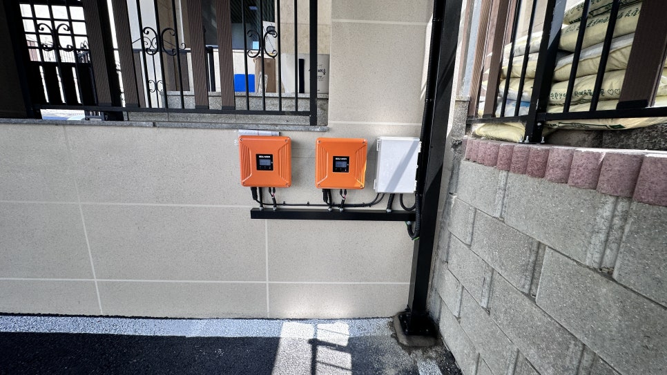 인버터는 태양광주차장 뒤쪽 벽에 설치가 되었습니다. 경기도 이천시 현장에서는 4.4kW 요금상계거래 신청했습니다. 태양광 주차장 시공을 통해 에너지를 생산하고 전기요금 부담은 확실히 내려갑니다. <태양광 주차장 시공 후>