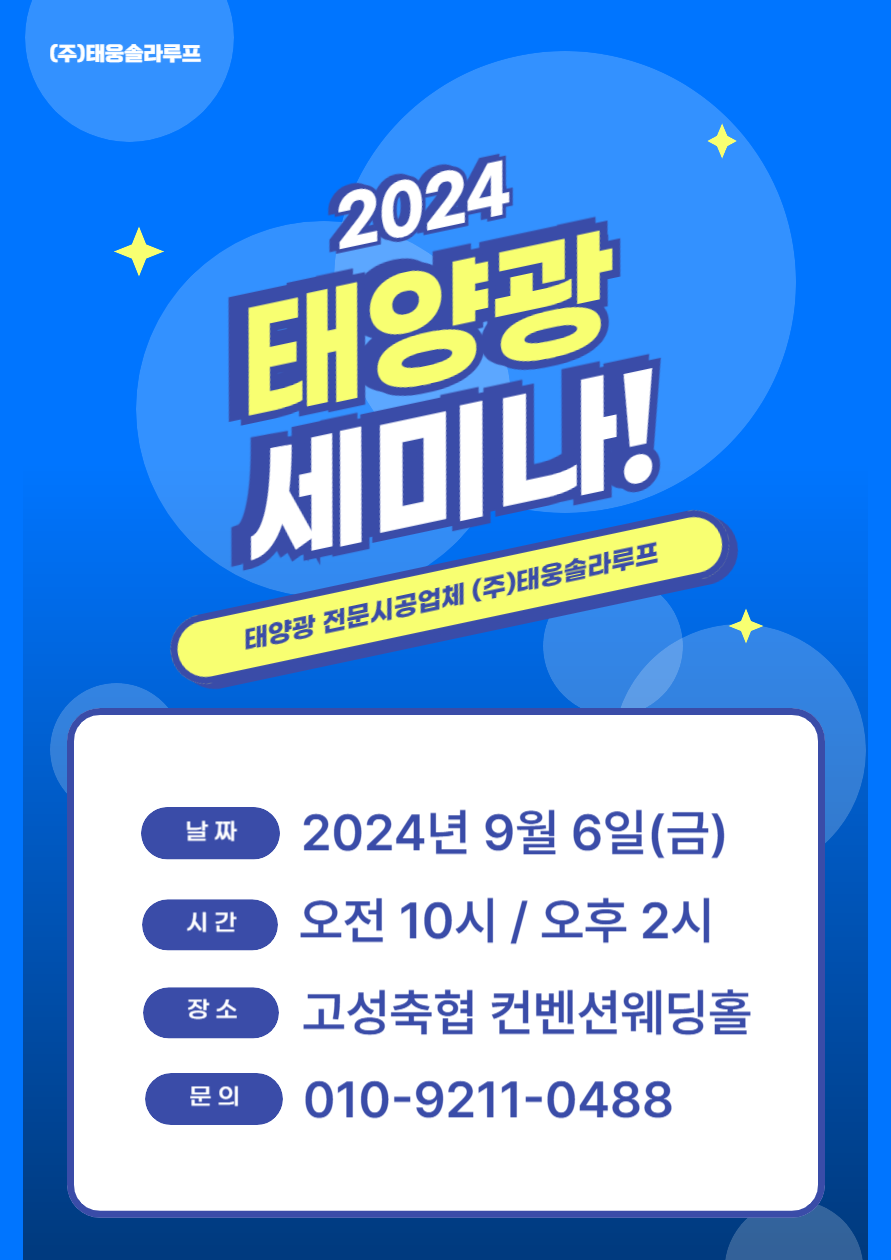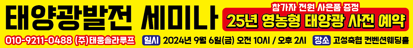 [캐노피태양광 시공사례] <공고> 태양광발전 세미나 안내 (경남 고성축협 컨벤션웨딩홀)
