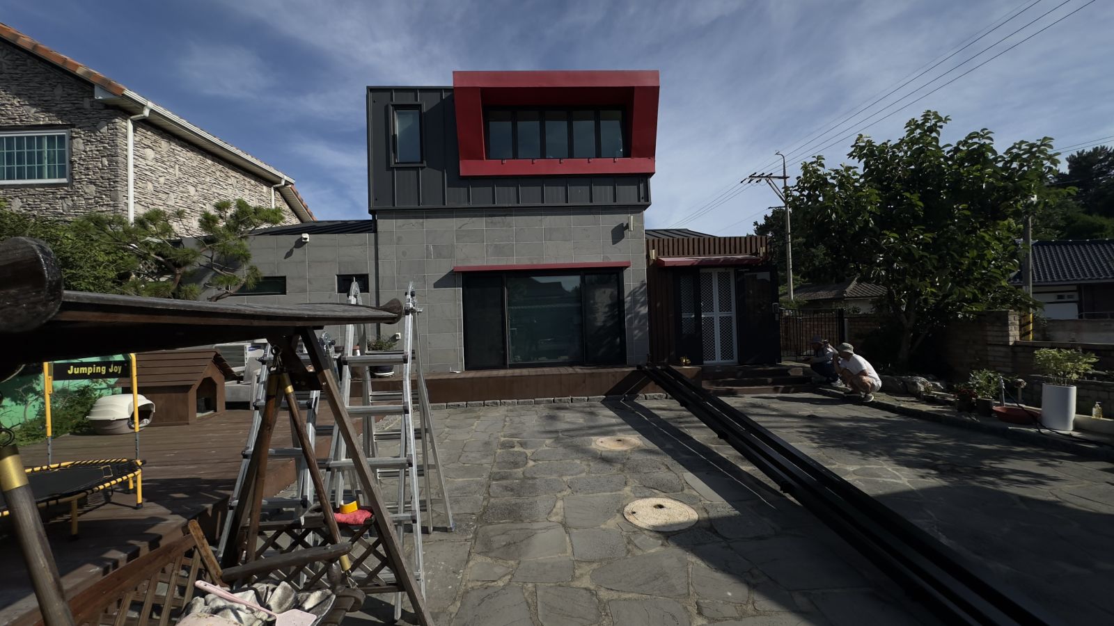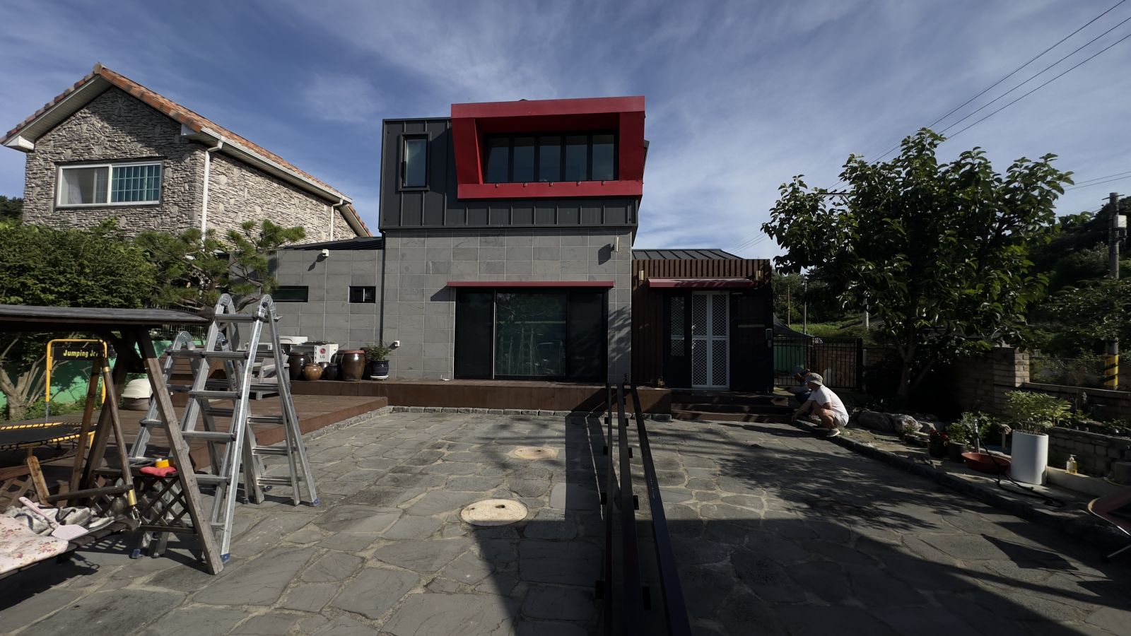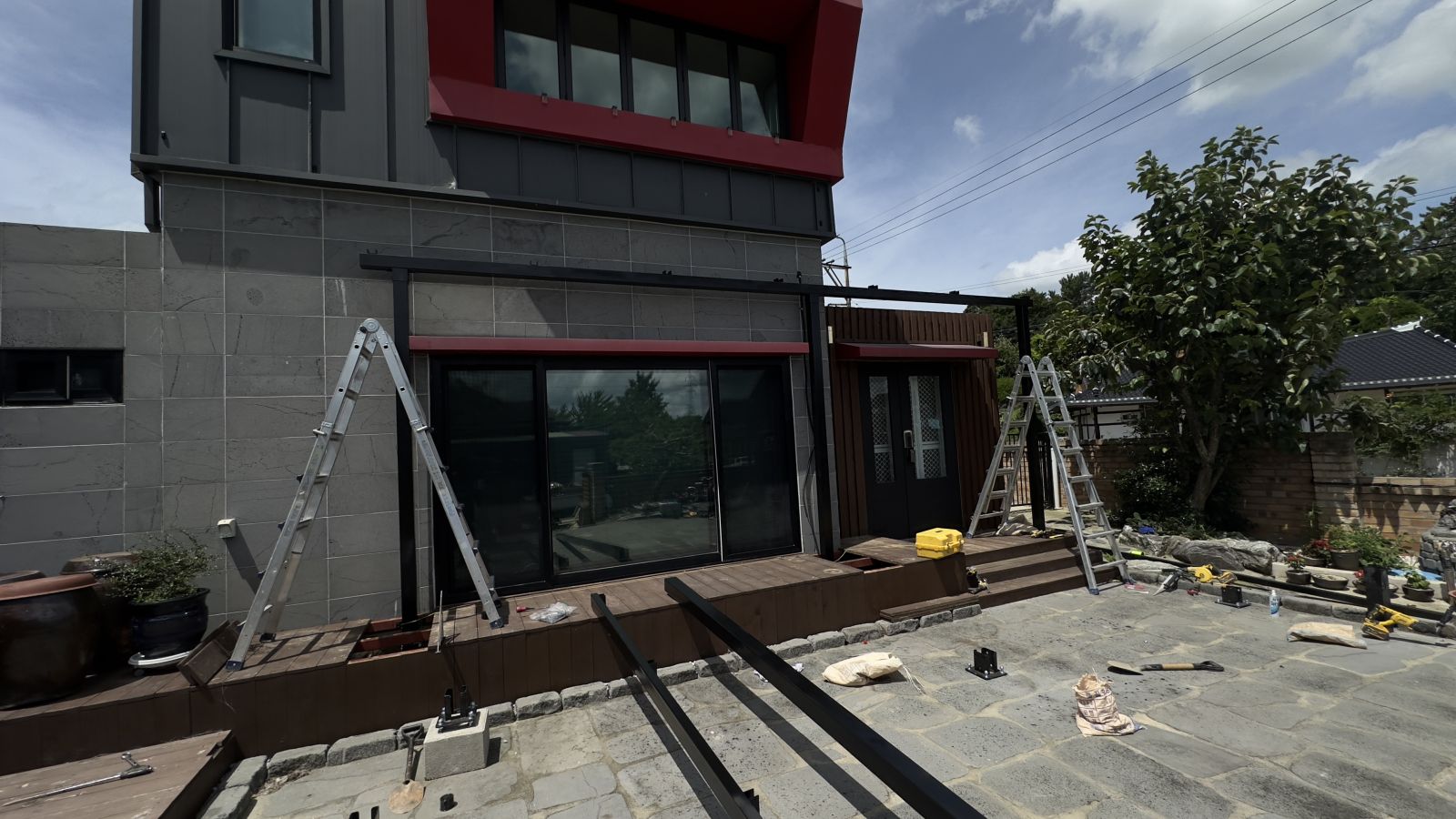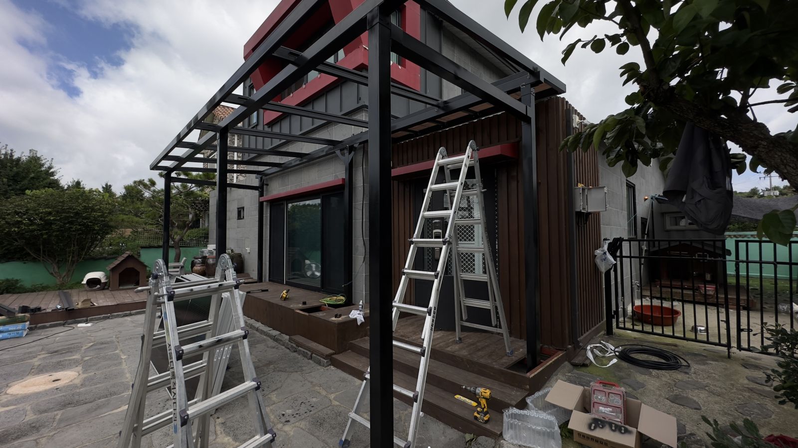 멋진 디자인의 전원주택입니다. 전면이 확 트임은 너무나 좋지만, 그늘막이 없어서 태양광캐노피 설치를 의뢰하셨습니다. 돌마당이며 그네, 나무들, 장독대 등 건축주님의 부지런함이 엿보이는 나무데크로 올려져 있는 전원주택입니다. *태양광 캐노피 3D동영상 무료견적