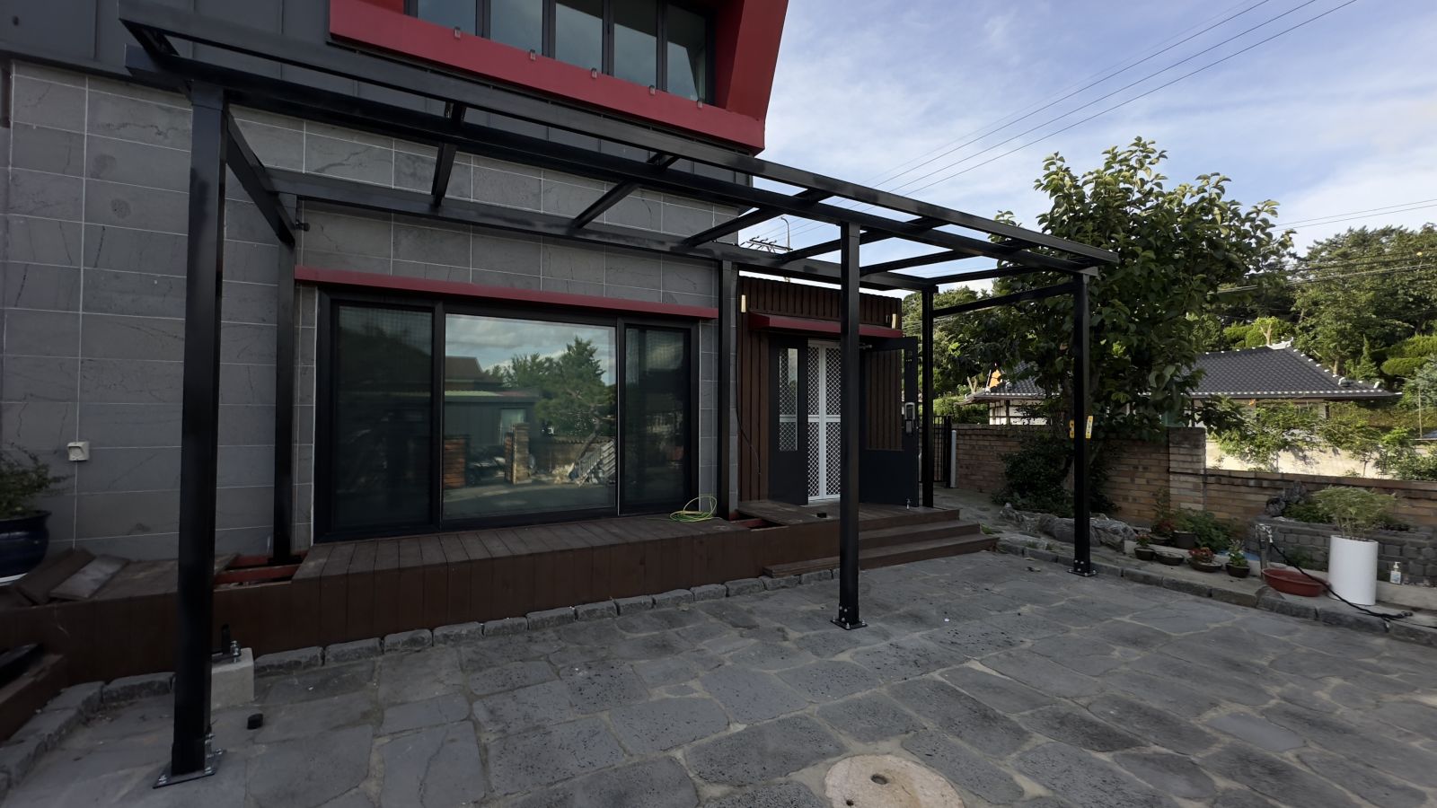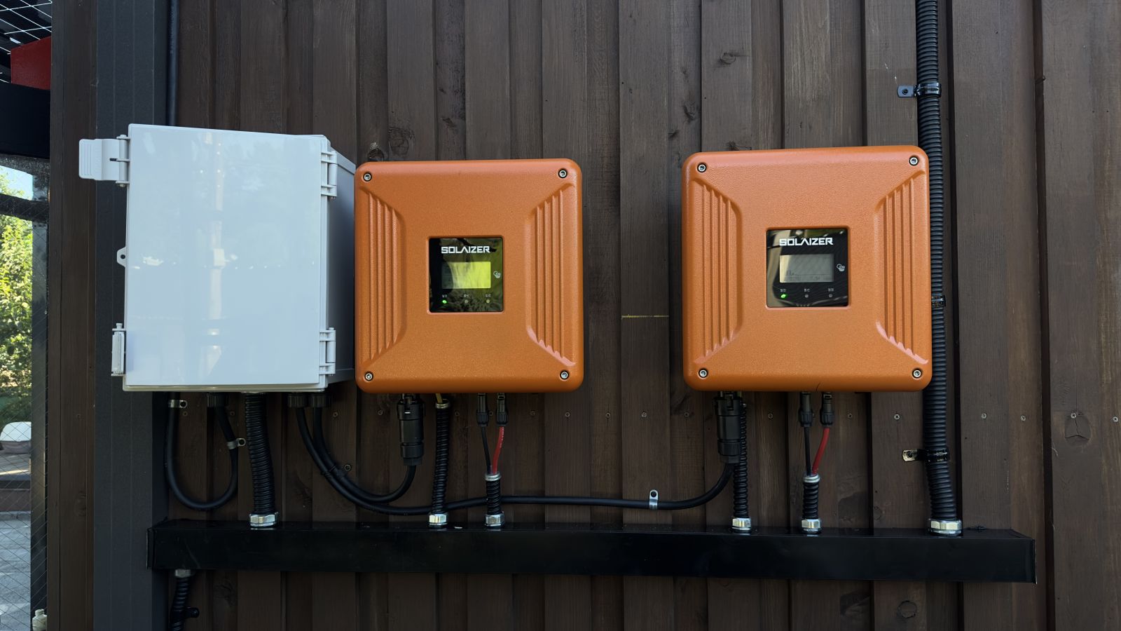 인버터는 주택 외벽에 설치를 합니다. 전북 군산시 현장의 설비용량은 9kW로 한전에 증설 후, 요금상계거래 신청되었고 한국전기안전공사의 사용전점검까지 완료하였습니다. 태양광 캐노피 시공을 통해 에너지를 생산하고 전기요금 부담은 확실히 내려갑니다. *태양광캐노피 시공 후