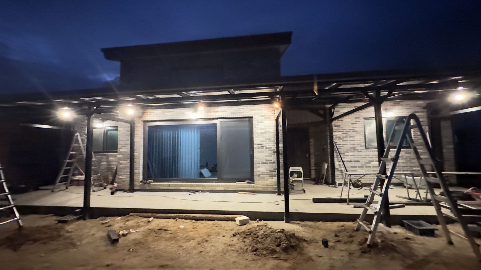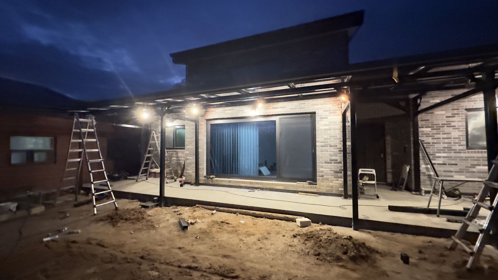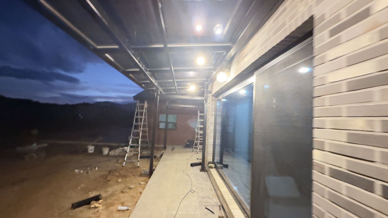 태양광 캐노피 작업시 비가 내린 날이 많아서 마지막에는 야간 작업이 있었네요. 저희 태웅솔라의 양면그라스 모듈은 방수기능을 위해 세심한 작업을 해서 기상재해에도 안전하게 보호합니다. 고급 LED 레일 등 시공