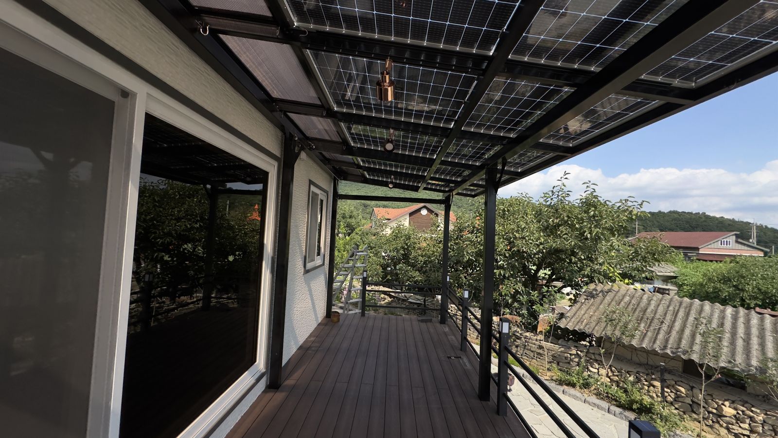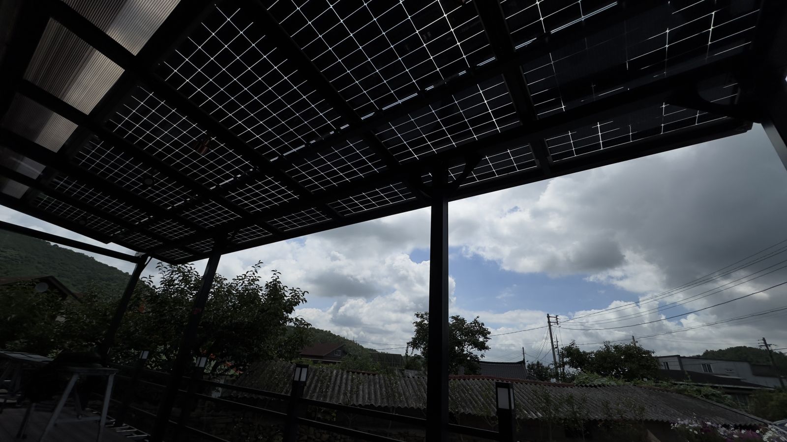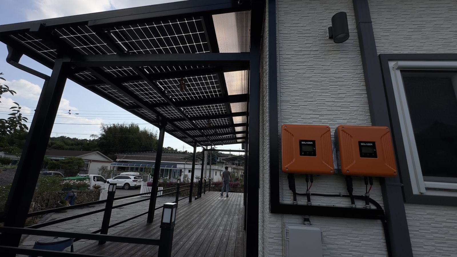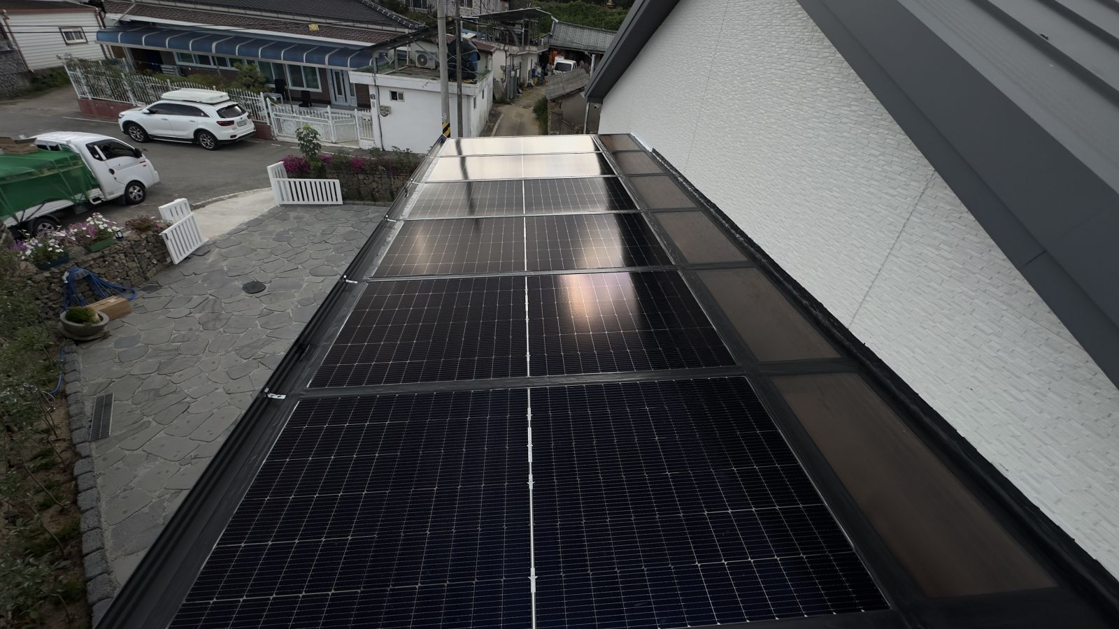 태양광캐노피 구조물 색상이 블랙으로 전원주택과 잘 어울리고 세련된 이미지로 업그레이드 되어 외관적으로나 기능적으로 주택의 가치가 확 올라가게 됩니다.