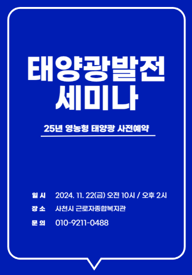 [캐노피태양광 시공사례] <공고> 태양광발전 세미나 안내 (경남 사천시 근로자종합복지관)