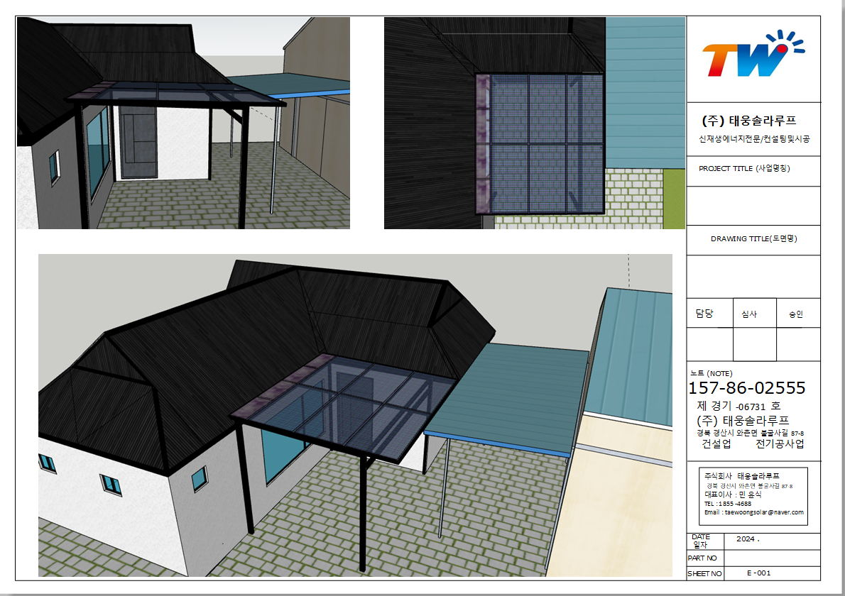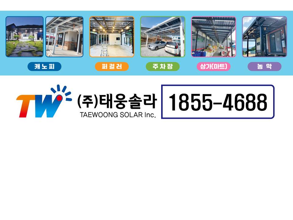 태웅솔라는 전국 어디든지 무료견적, 무료 동영상 제공, 구조물 제작, 시공, AS, 한국전력공사의 요금상계거래 증설, 접수 한국전기안전공사의 사용전점검 신청과 확인증 확인까지 모든 서류적인 업무의 빠른 진행을 자랑합니다. 걱정마시고 편하게 전화주세요~~ #그늘막 #가정용태양광 #태양광 #태양광발전 #태양광캐노피 #태양광파고라 #여름전기세 #야외바베큐장 #태양광캐노피 #태양광 #가정용태양광 #태양광주차장 #태양광차고 #태양광방수캐노피 #햇빛가리개 #비가림막 #전원주택캐노피 #태웅솔라 #비막이렉산캐노피 #처마비가림 #비막이 #주택캐노피 #옥상캐노피 #태양광모듈 #태양광인버터 |