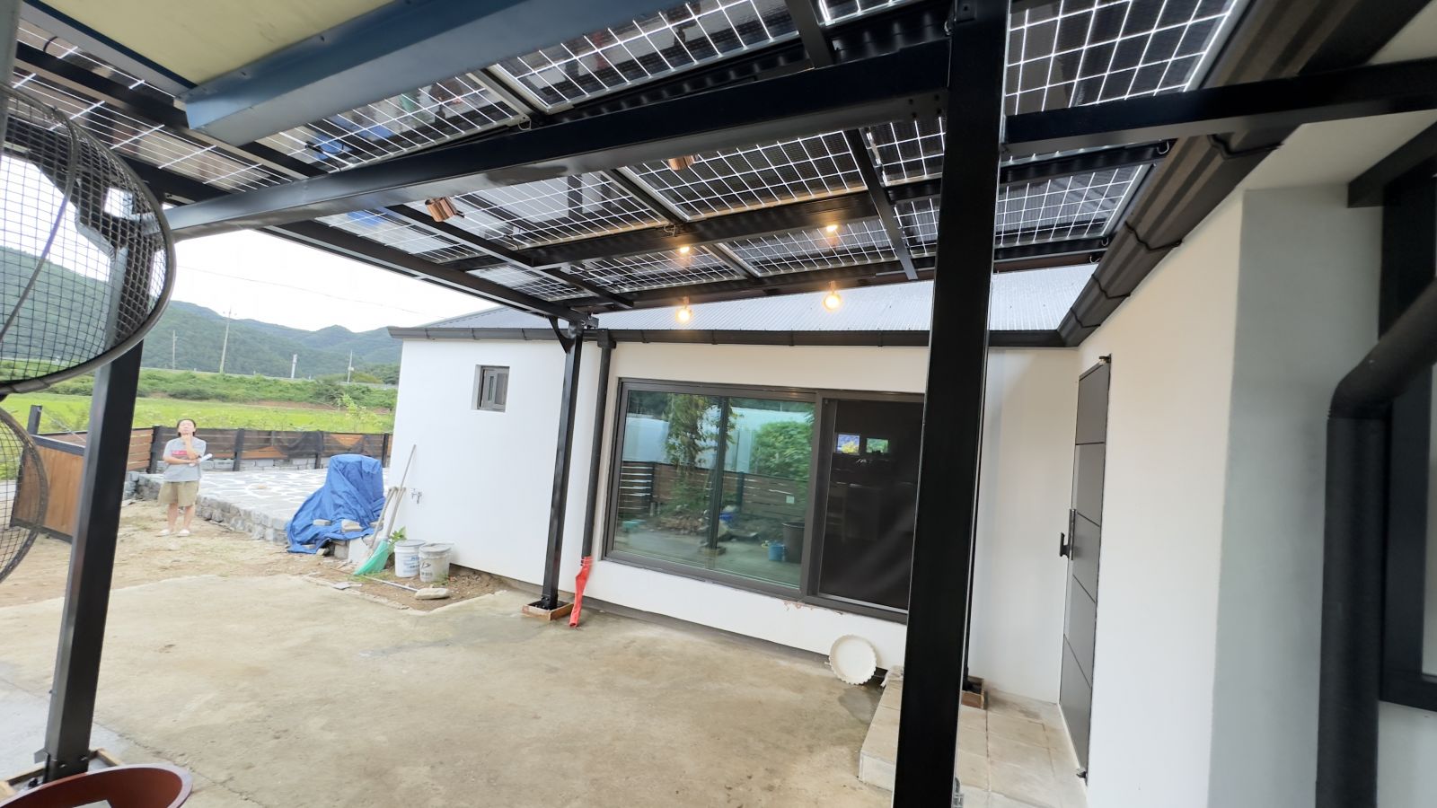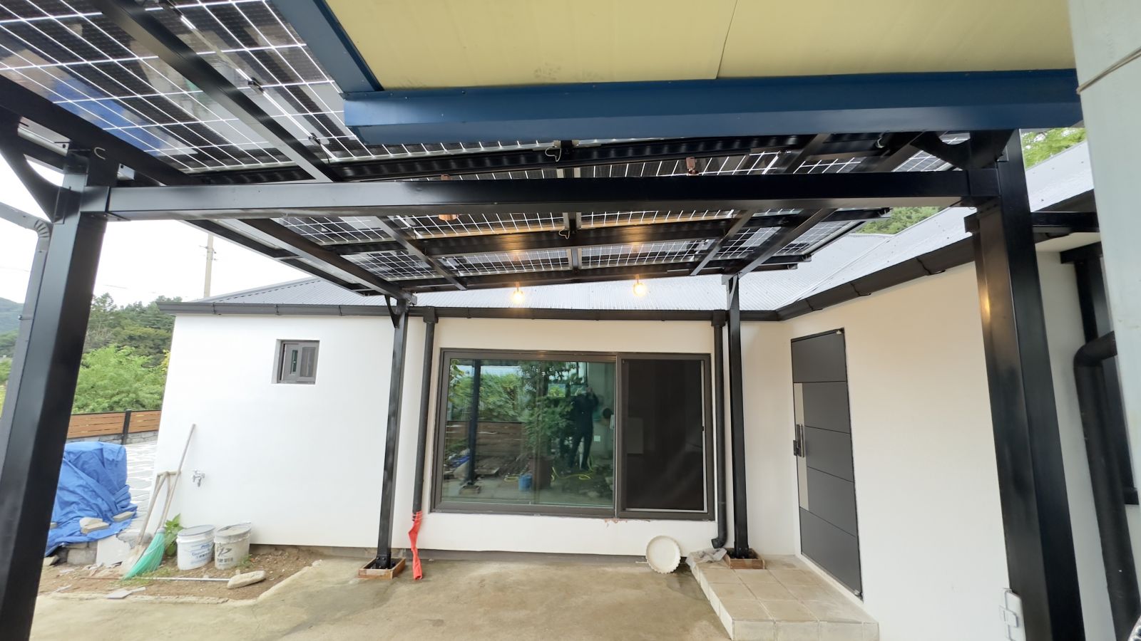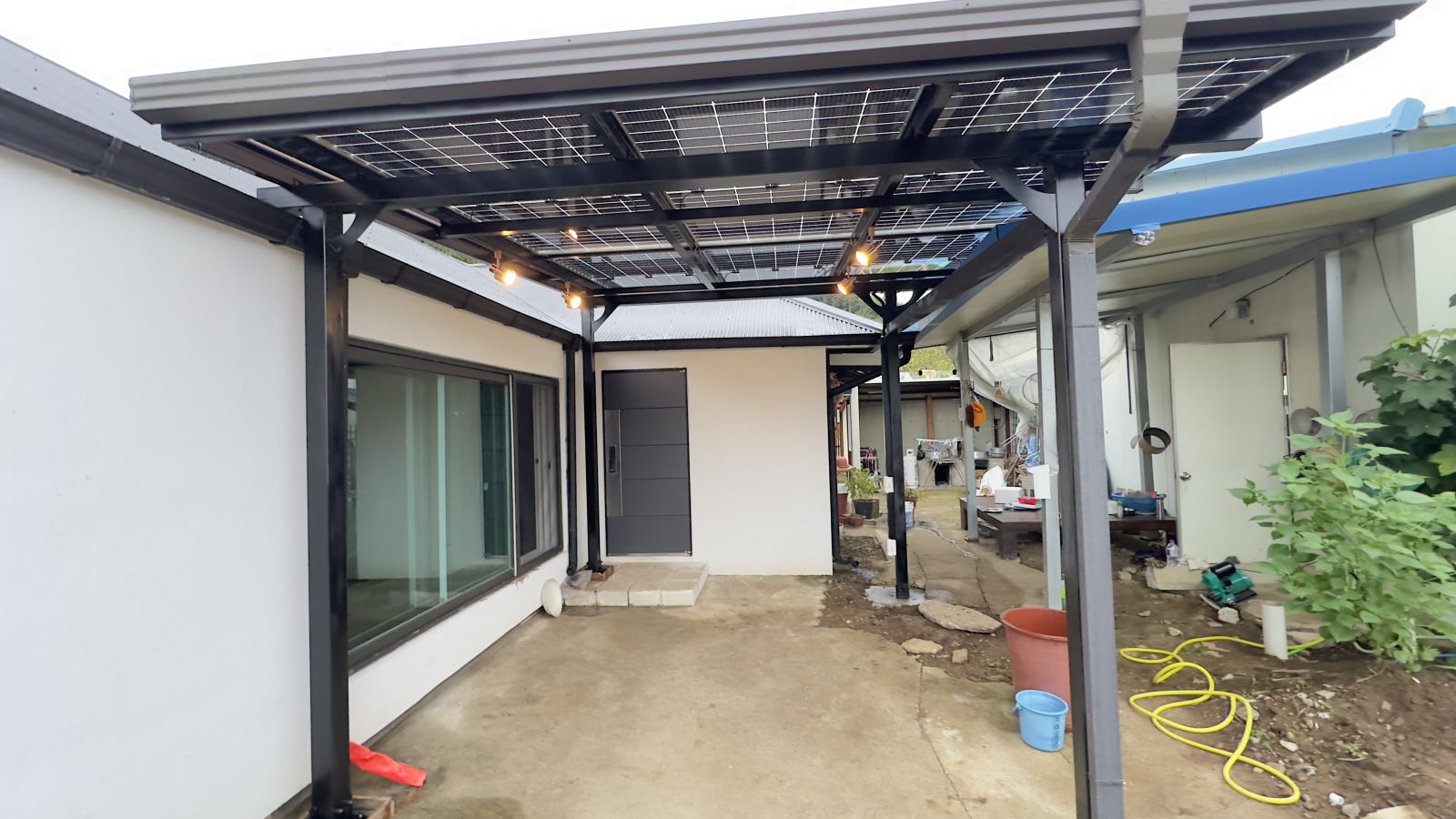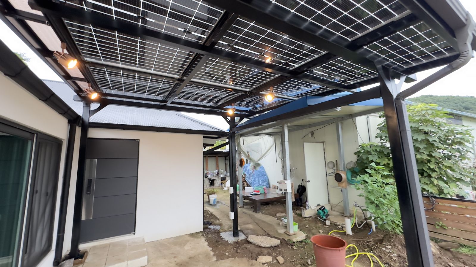 ![]() 조명시설인 LED 레일 등을 기본으로 설치해드렸습니다. 저녁에는 환한 불빛으로 밝고 편리하게 생활하실 수 있습니다. ![]() 물받이까지 일광시공해서 추후 추가공사가 필요없는 태웅솔라의 태양광 방수캐노피입니다. ![]() ![]() 태양광캐노피 인버터 시공 양면그라스 모듈은 일반모듈보다 생산이 높아 인버터를 설치하여 발전된 전기를 효율적으로 관리하여 가정내 전기요금을 절약할 수 있습니다. 태양광캐노피 시공 후