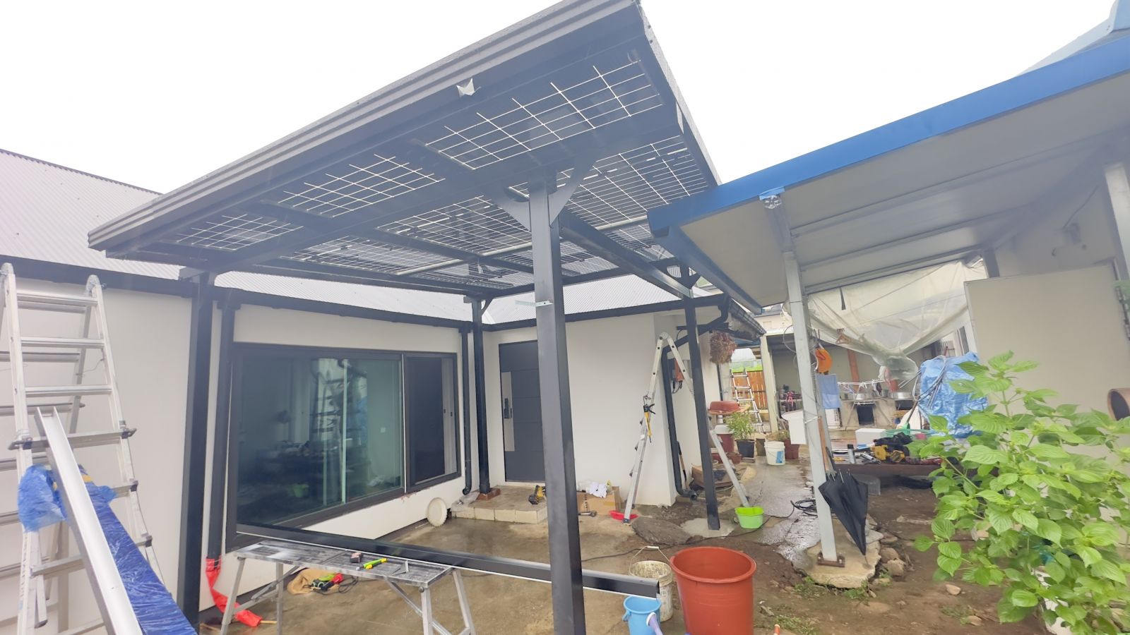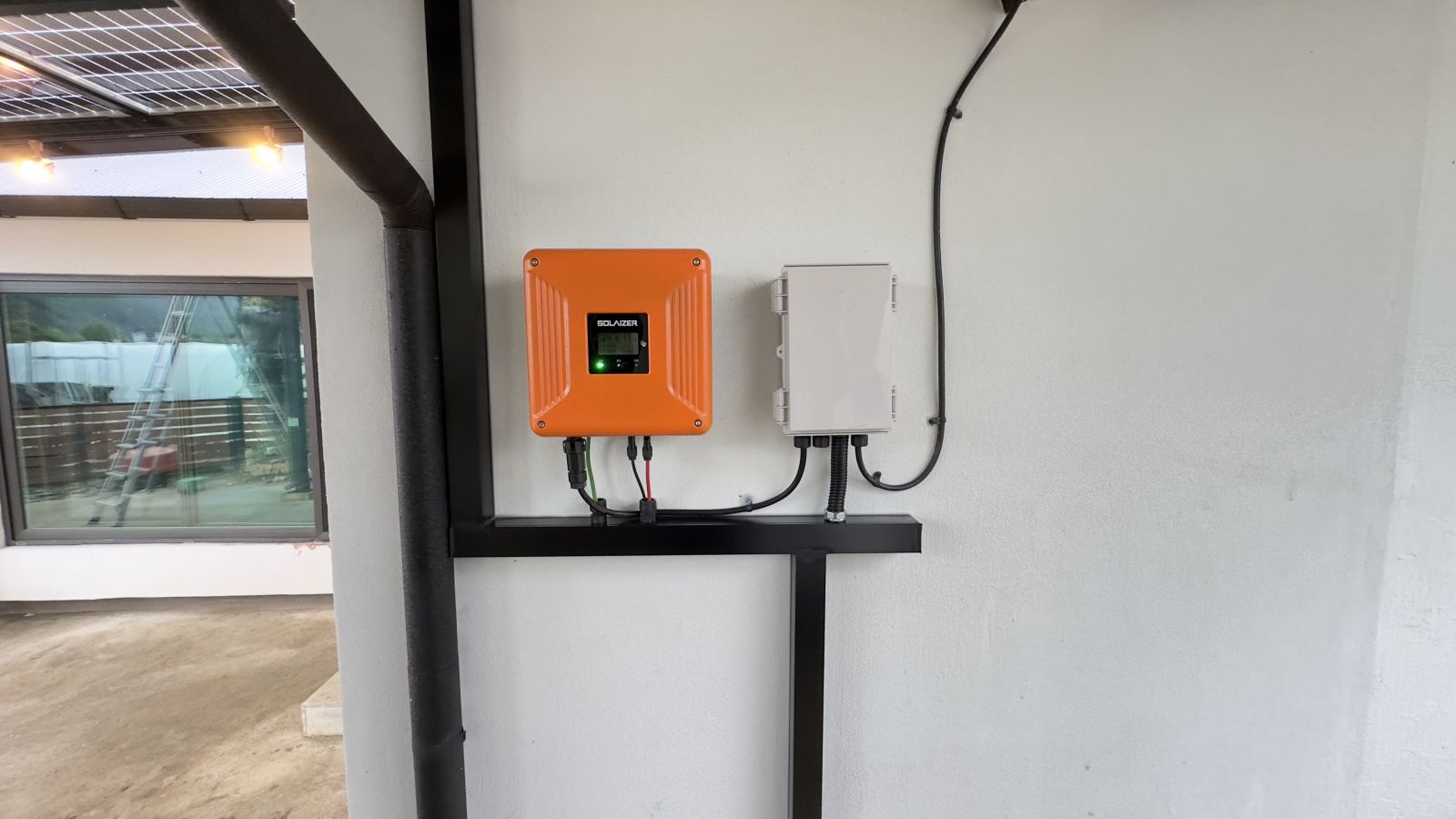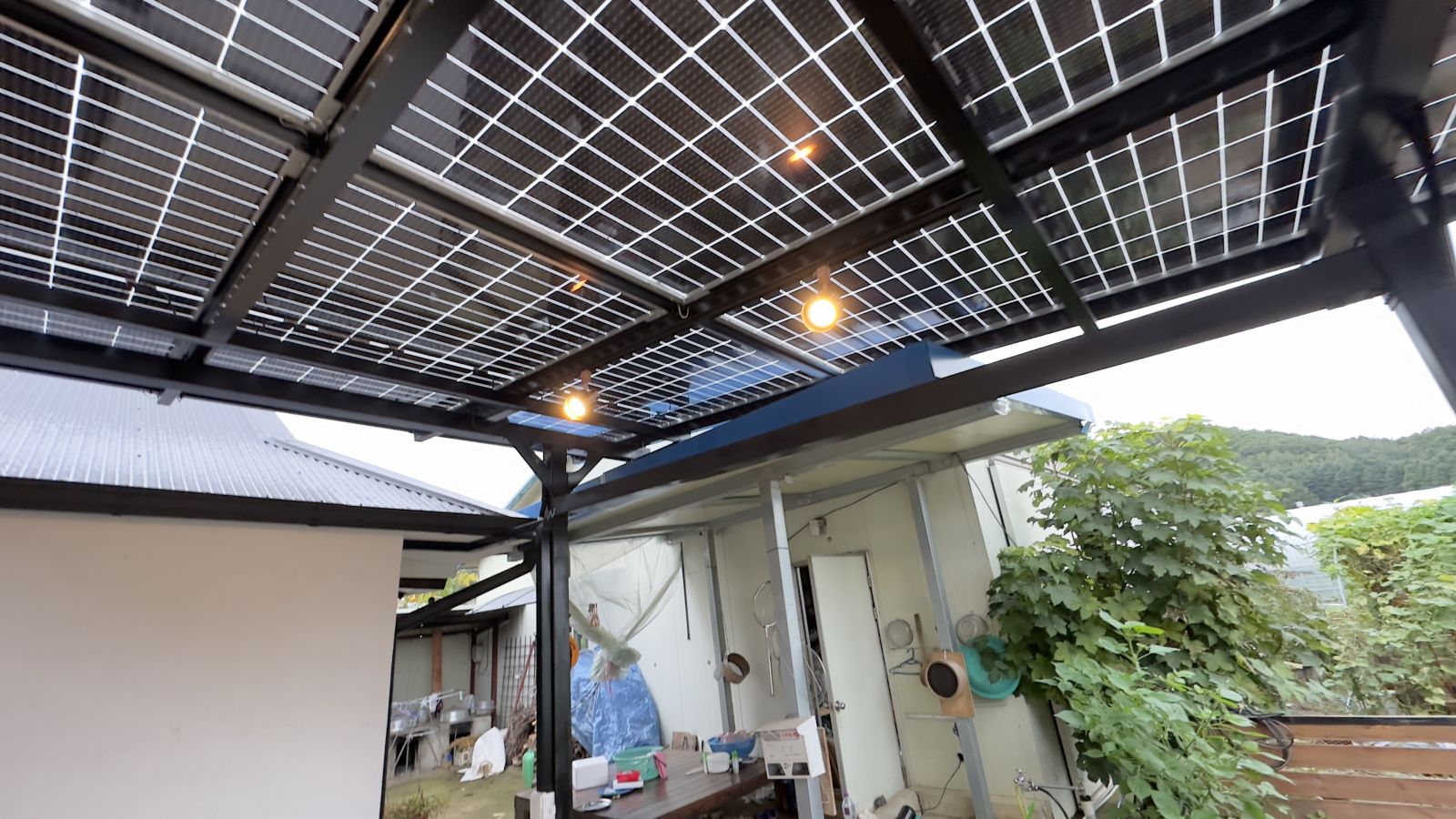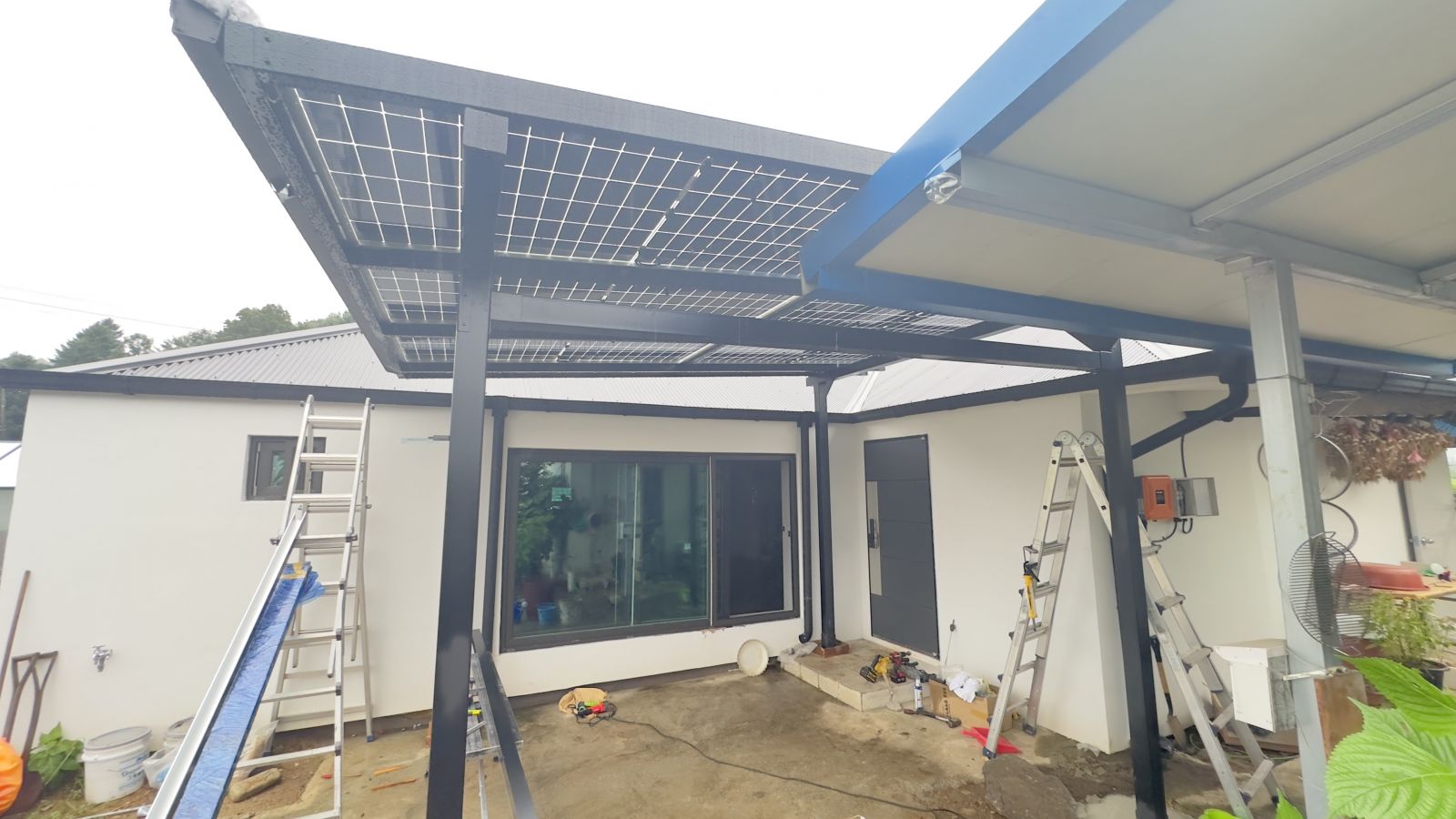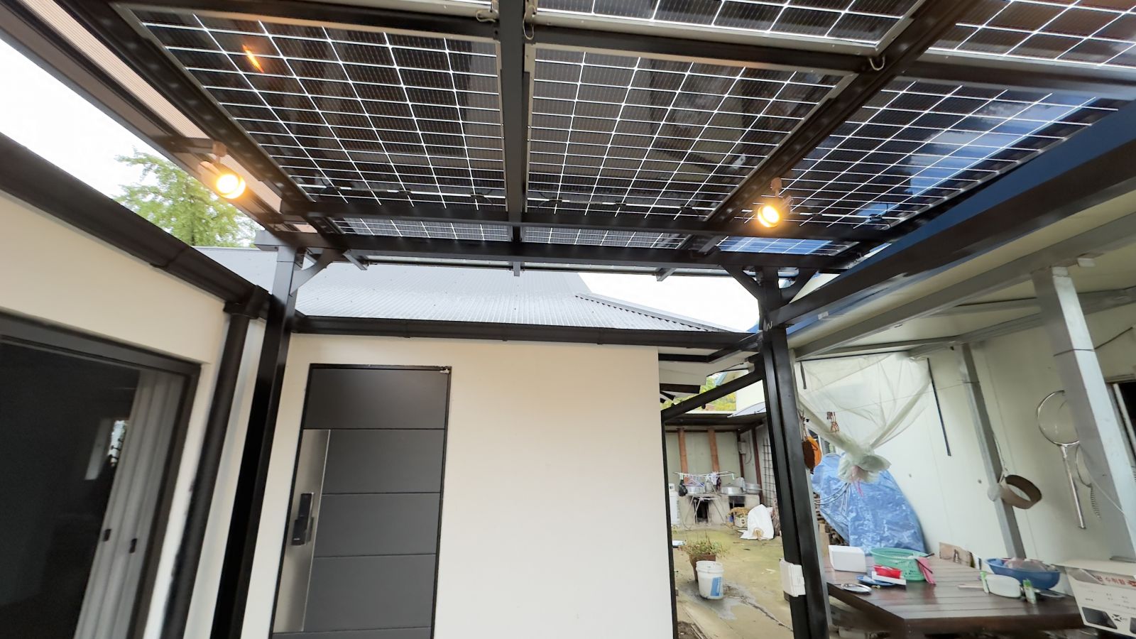 ![]() 조명시설인 LED 레일 등을 기본으로 설치해드렸습니다. 저녁에는 환한 불빛으로 밝고 편리하게 생활하실 수 있습니다. ![]() 물받이까지 일광시공해서 추후 추가공사가 필요없는 태웅솔라의 태양광 방수캐노피입니다. ![]() ![]() 태양광캐노피 인버터 시공 양면그라스 모듈은 일반모듈보다 생산이 높아 인버터를 설치하여 발전된 전기를 효율적으로 관리하여 가정내 전기요금을 절약할 수 있습니다. 태양광캐노피 시공 후