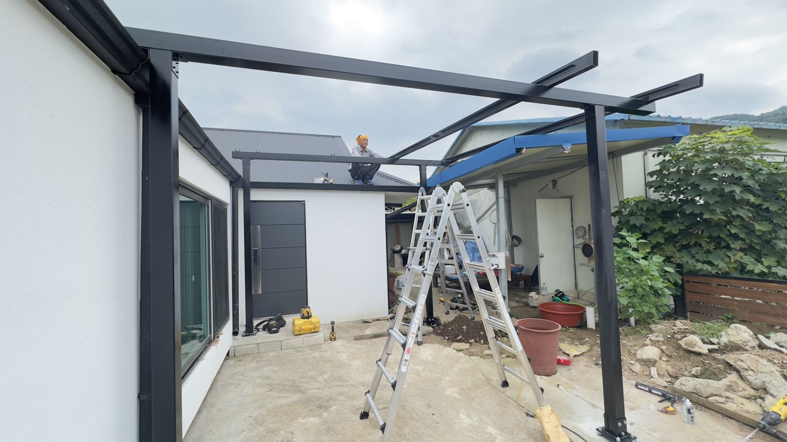 안녕하세요~ 태웅솔라입니다^^ 강한 바람이 불어 체감온도가 더욱 낮아지고 있습니다. 전국 곳곳에 비 소식도 있다고 하니 옷을 두껍게 입는 등 건강관리 잘 하셔야겠습니다~~ 태양광 캐노피 시공 전 ![]() ![]() 강원도 홍천의 주택은 본체와 바로 앞 창고 사이에 태양광 캐노피를 설치하고자 의뢰하셨습니다. 태양광캐노피가 설치된다면 비를 맞지않고 뽀송하게 옆 창고로 갈 수 있고, 전기요금 절약도 할 수 있겠지요~~ 지금 저희 사장님이 서 있는 공간, 위 지붕이라고 보시면 되겠습니다. 태양광캐노피 시공 전 3D 동영상 무료견적