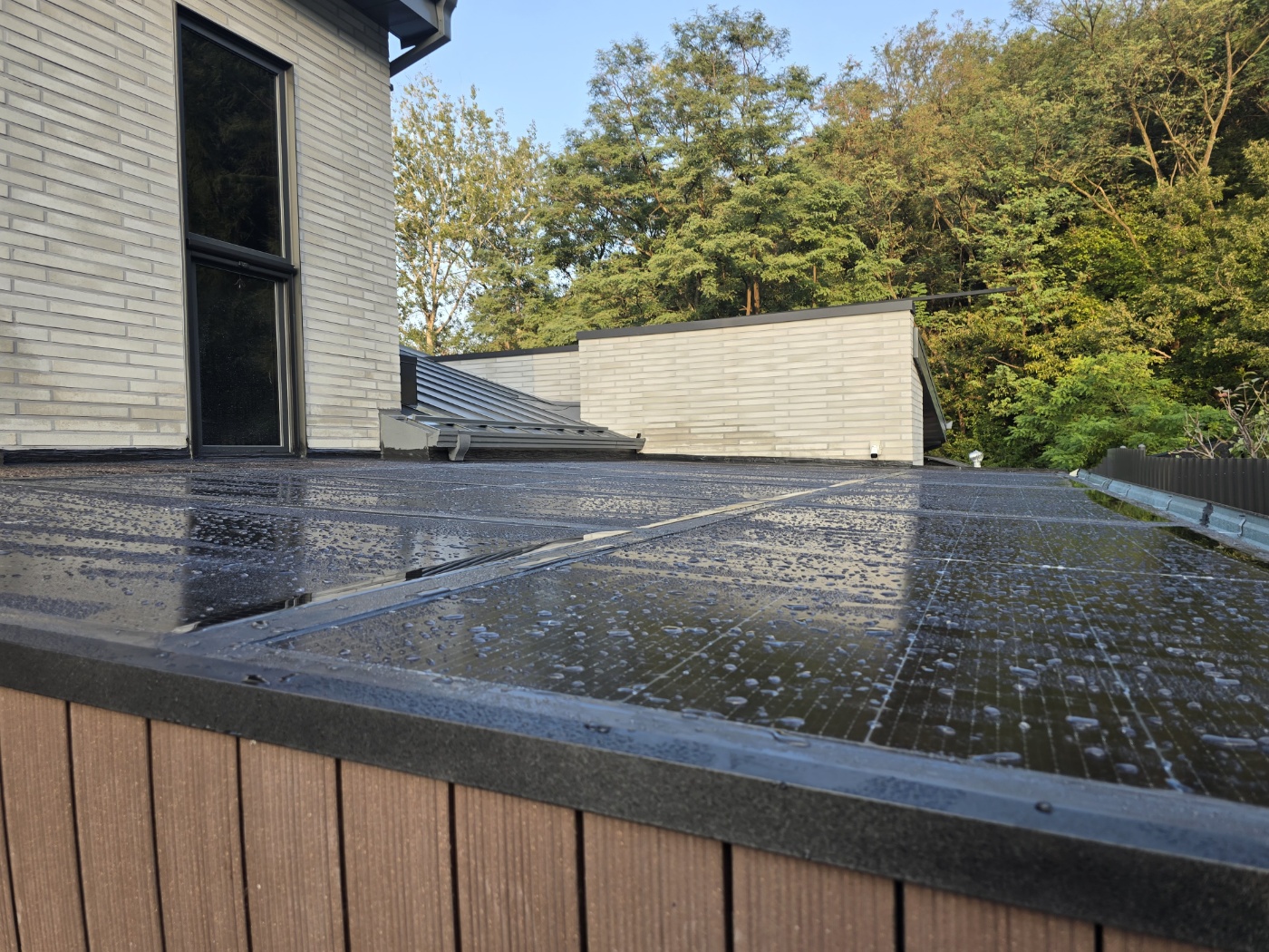 양면그라스모듈 부착 후에는 각각의 모듈 칸마다 특수실리콘, 테이프 등으로 방수작업을 꼼꼼하게 해서 기상재해에도 문제가 없습니다.