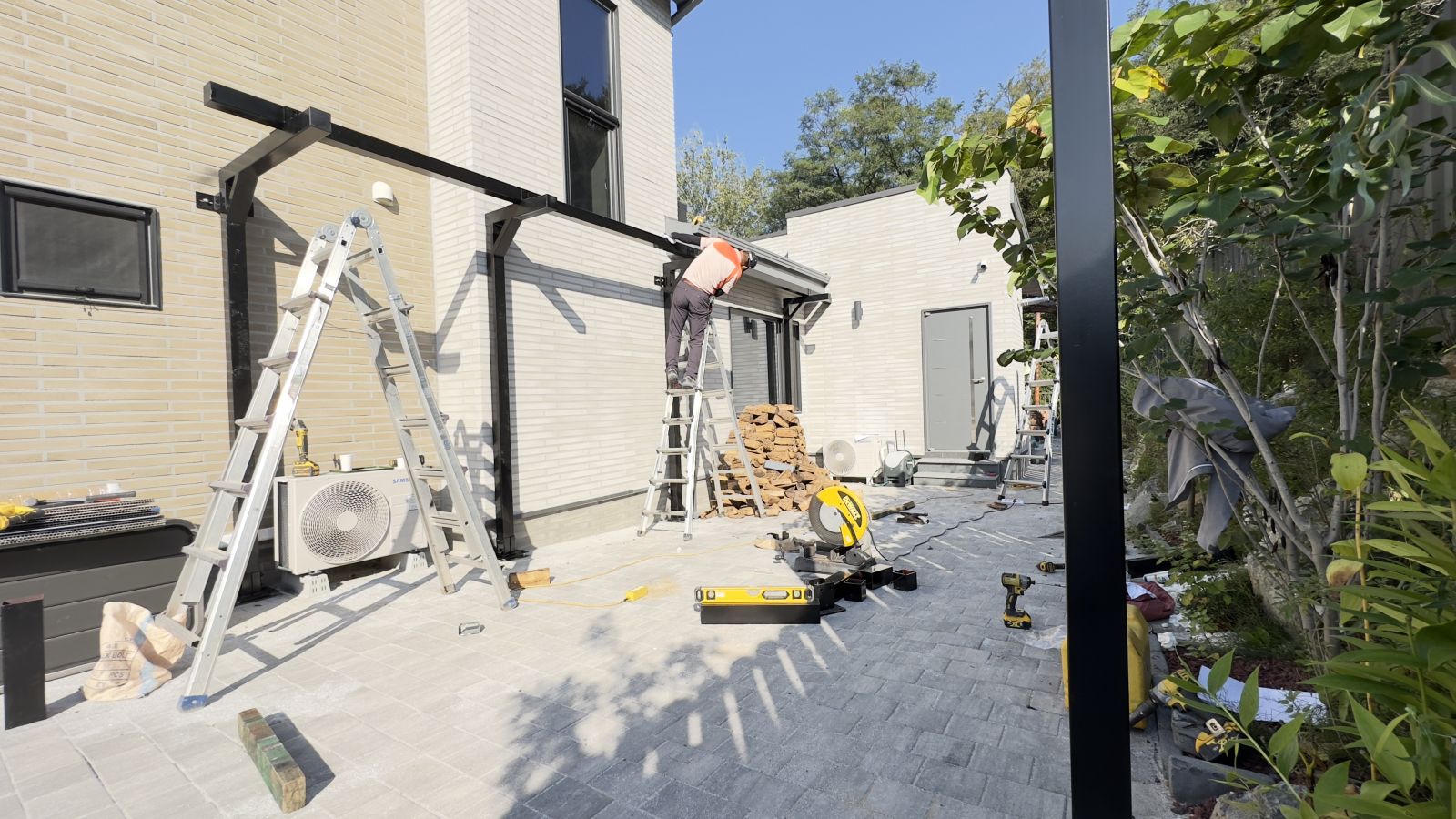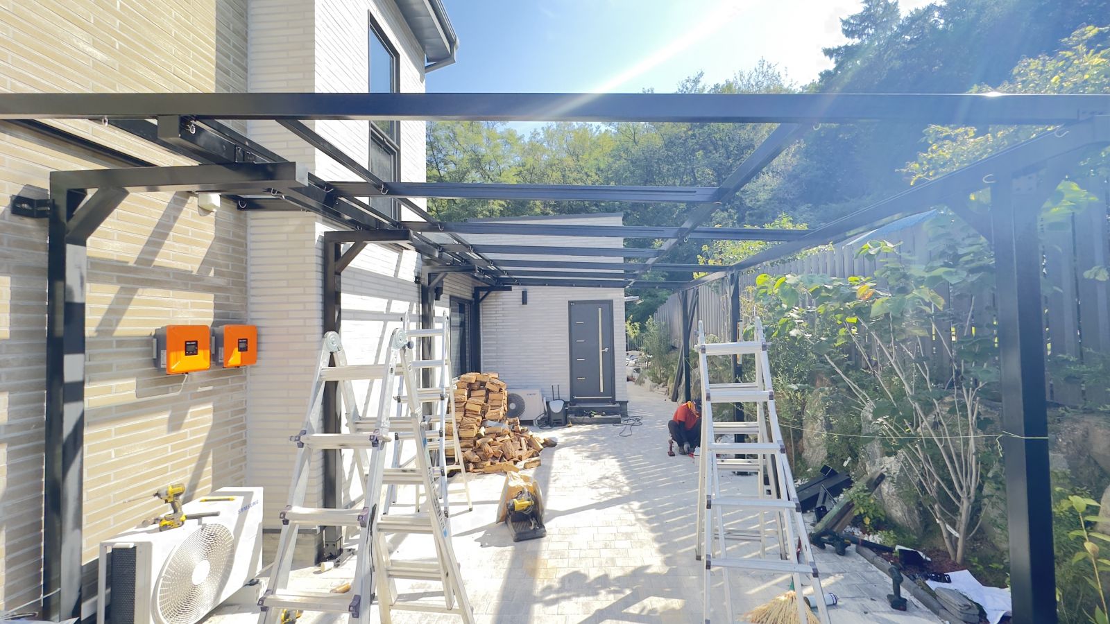 튼튼하게 기초작업을 완료하고 양면그라스모듈을 작업할 수 있도록 촘촘히 기둥 작업을 하게 됩니다. ![]()