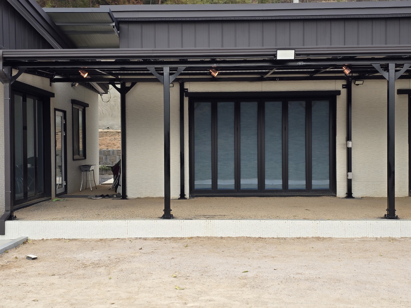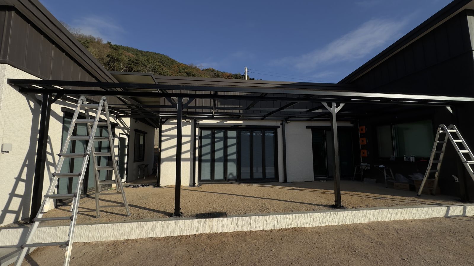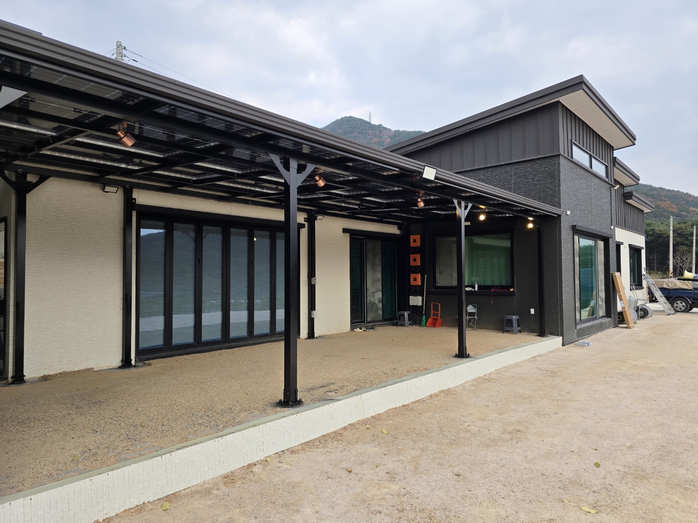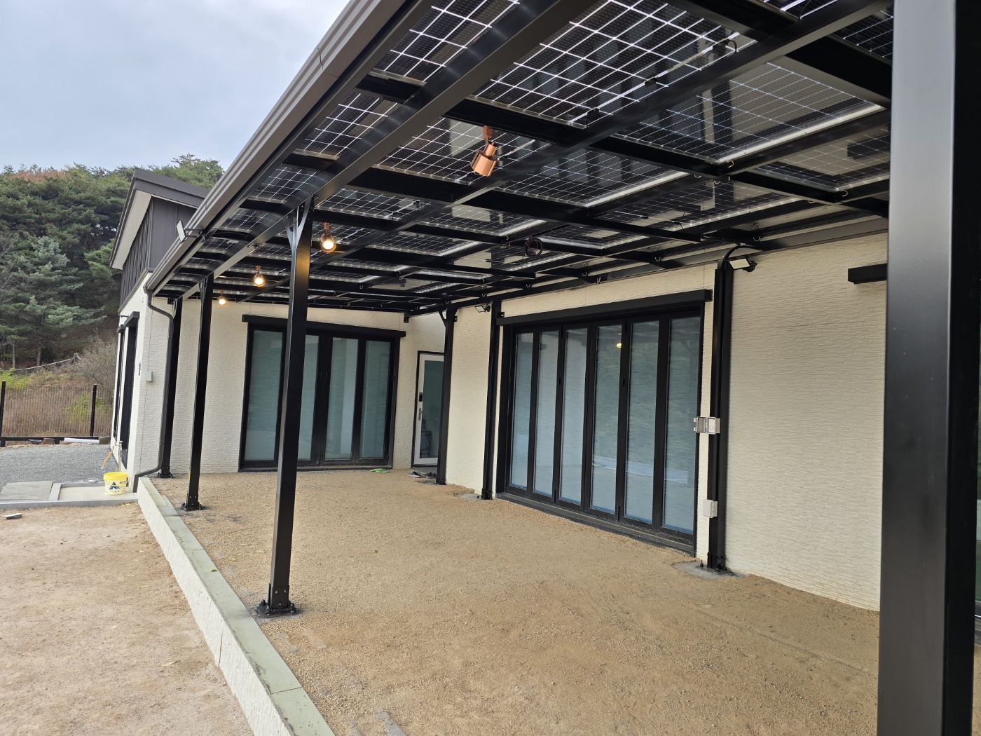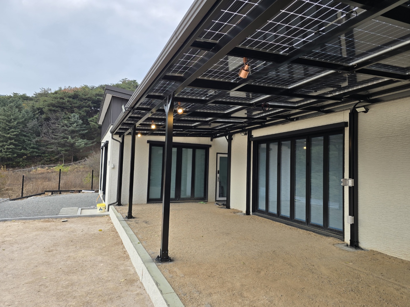 저희 태웅솔라로직접 찾아오셔서 상담을 하시고는 현장실측을 한 후에도 여러 번 의견을 조율했습니다. 옆으로 길쭉하게 규모가 있는 건물을 지으셨는데요. 산중턱으로 전원주택들이 모여있는 곳이라 햇빛이 참 잘 들었습니다. 그러나 너무 강한 햇빛은 실생활에 조금은 불편합니다. 그늘막이 필요하고 비가 오면 문밖에 나갈 수 없으니 입구를 넓게 사용하고 싶어서 태양광캐노피 설치를 의뢰하셨습니다. 전기요금 절약도 큰 이유였습니다. 3D 동영상 무료견적