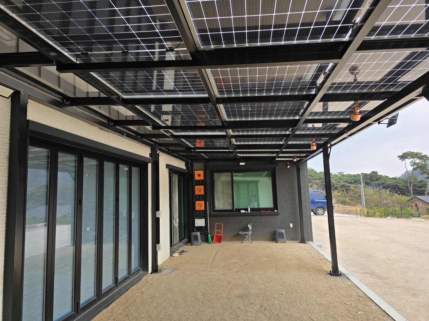 태양광 구조물은 모두 고온분체도장으로 제작해서 30여년간 녹과 색의 변함없이 사용하실 수 있습니다. 태양광캐노피 구조물 색상은 블랙으로 해서 더욱 세련된 이미지로 업그레이드 되어 외관적으로나 기능적으로 주택의 가치가 확 올라갑니다.