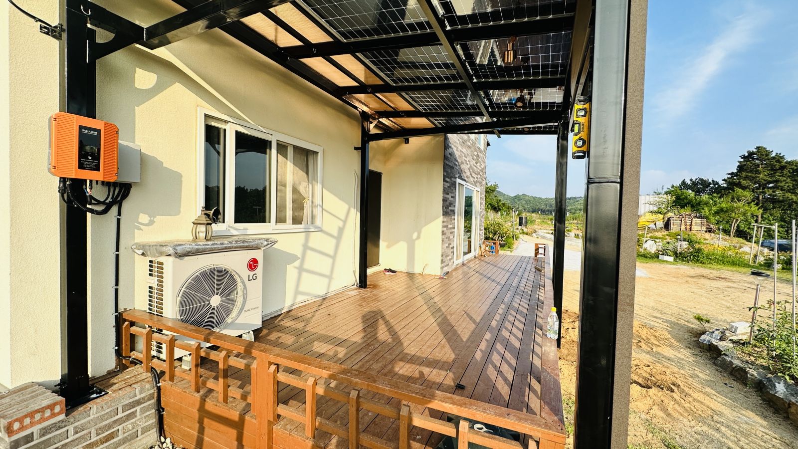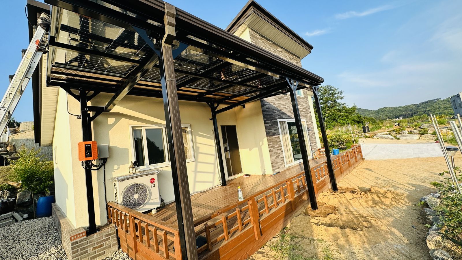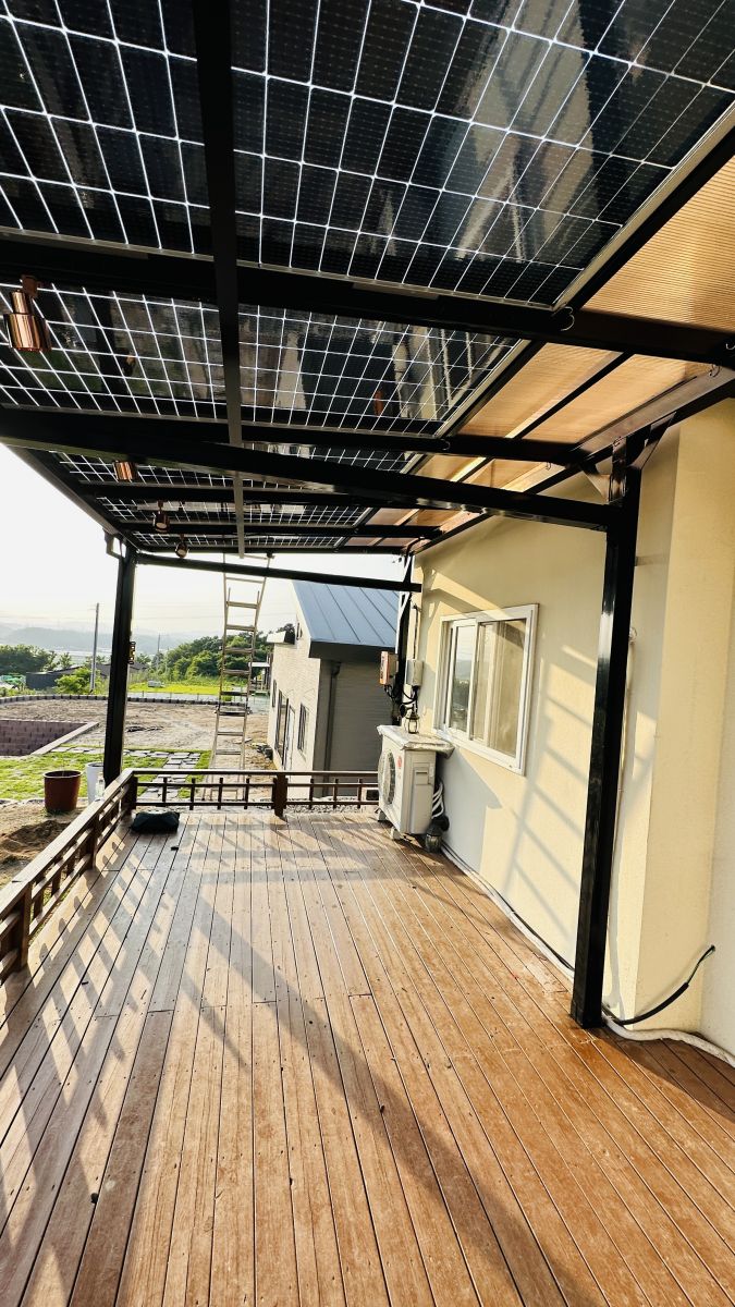 태양광캐노피 색상을 블랙으로 선택을 하셨네요~ 현재의 전원주택과 딱 맞는 색상이라 더욱 세련된 이미지로 업그레이드 되어 외관적으로나 기능적으로 주택의 가치가 확 올라가네요. ![]()