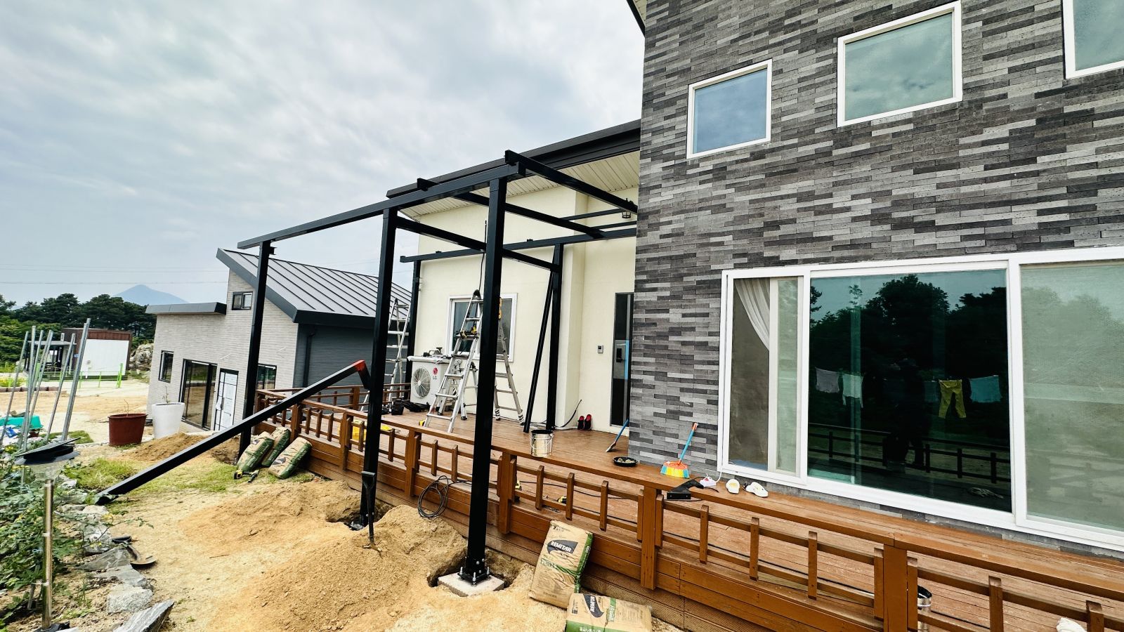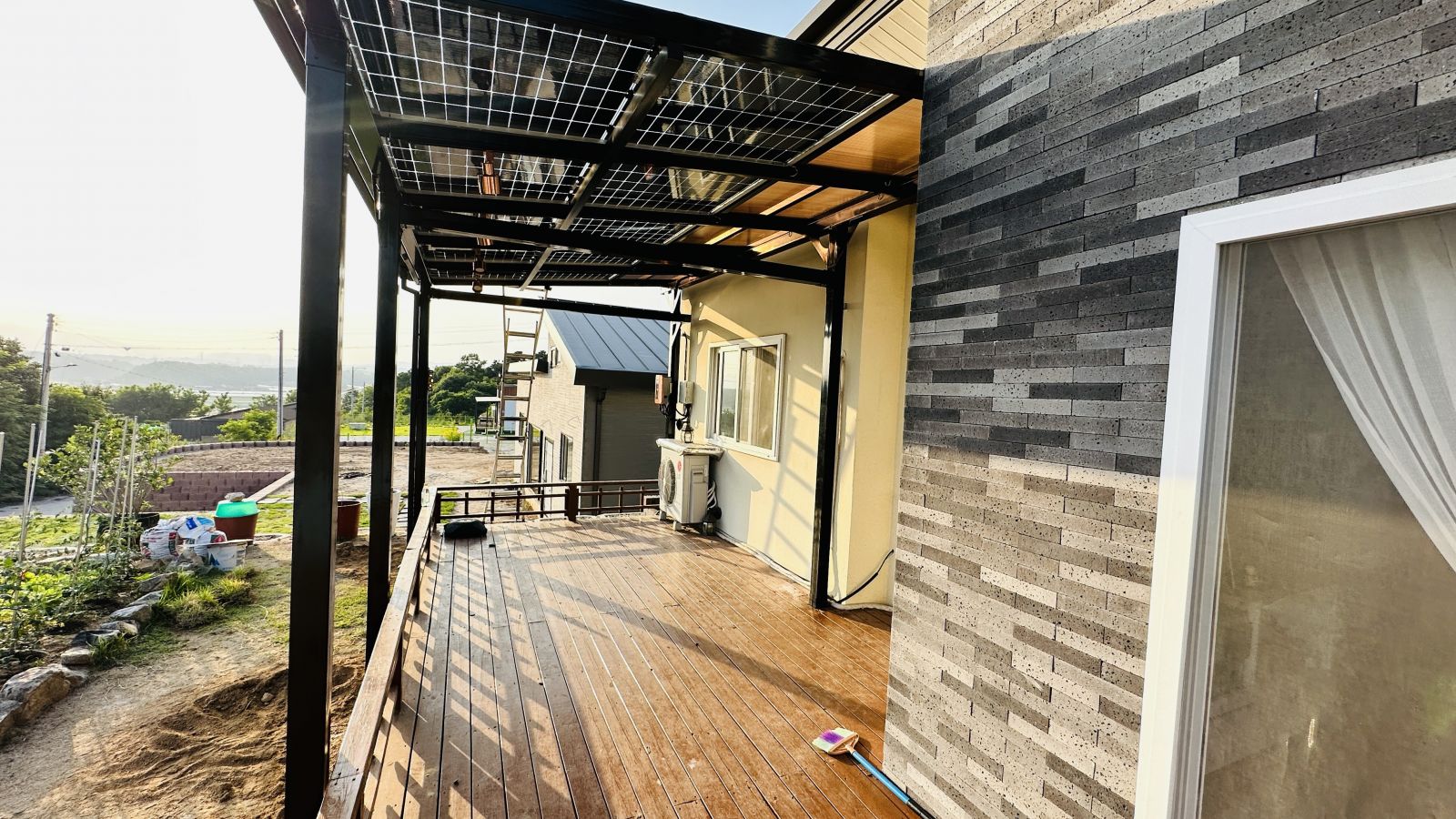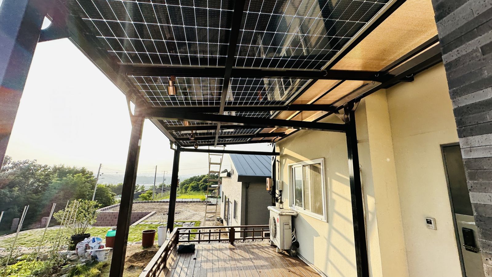 태양광캐노피 색상을 블랙으로 선택을 하셨네요~ 현재의 전원주택과 딱 맞는 색상이라 더욱 세련된 이미지로 업그레이드 되어 외관적으로나 기능적으로 주택의 가치가 확 올라가네요. ![]()