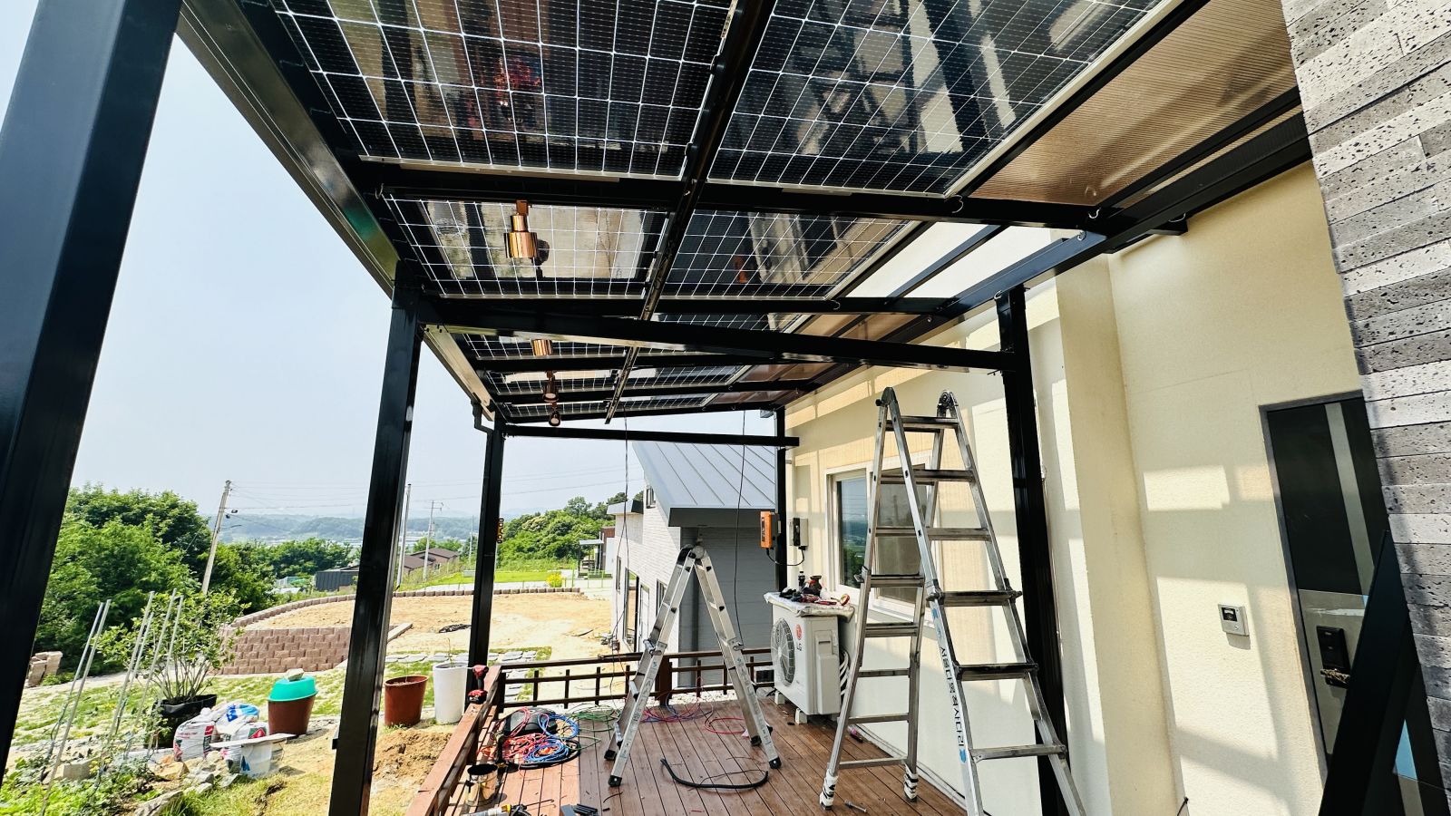 실용적으로 지어진 전원주택입니다. 전면부에 그늘막으로 태양광캐노피 설치를 의뢰하셨습니다. ![]()