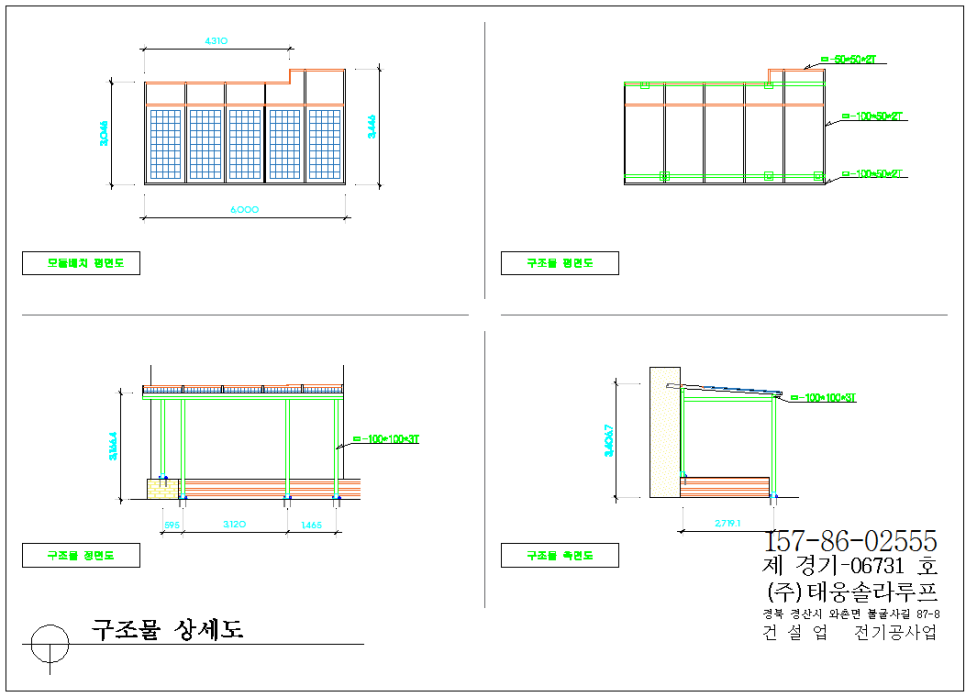 태양광 구조물은 모두 고온분체도장으로 제작해서 30여년간 녹과 색의 변함없이 사용하실 수 있습니다. ![]()