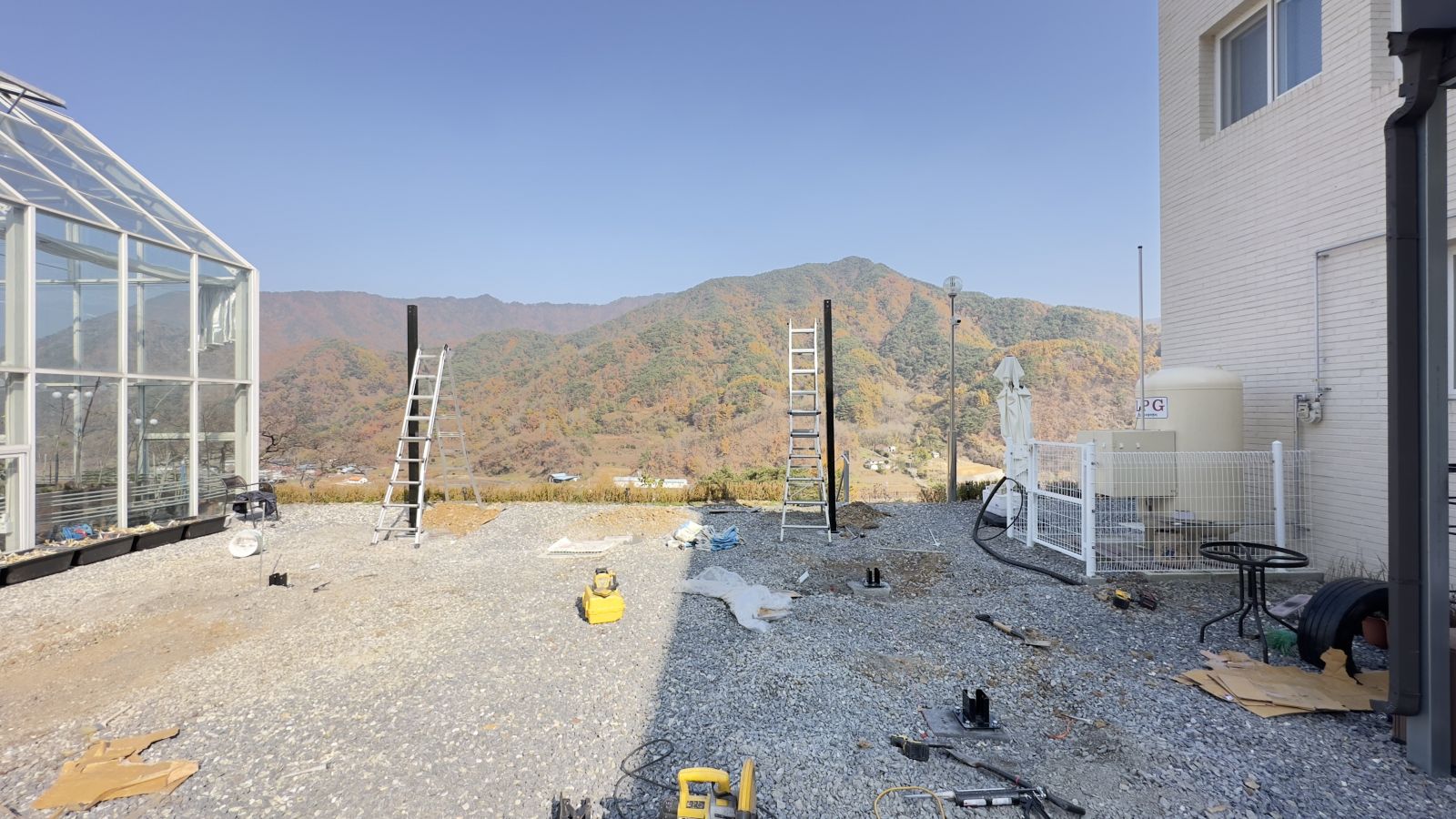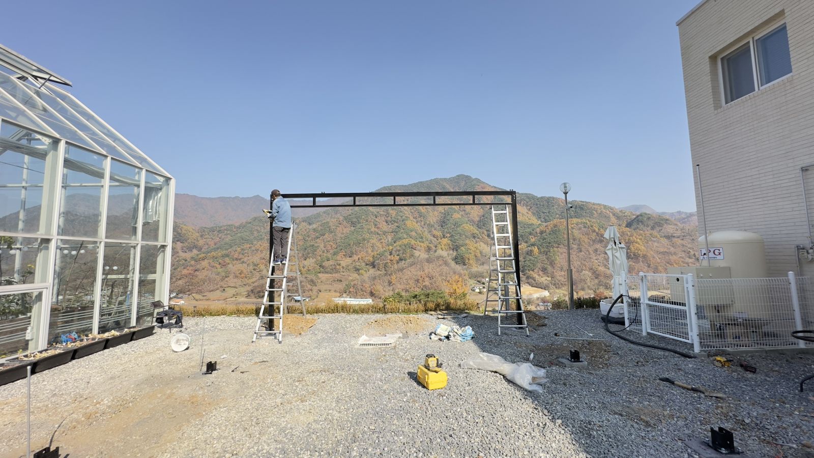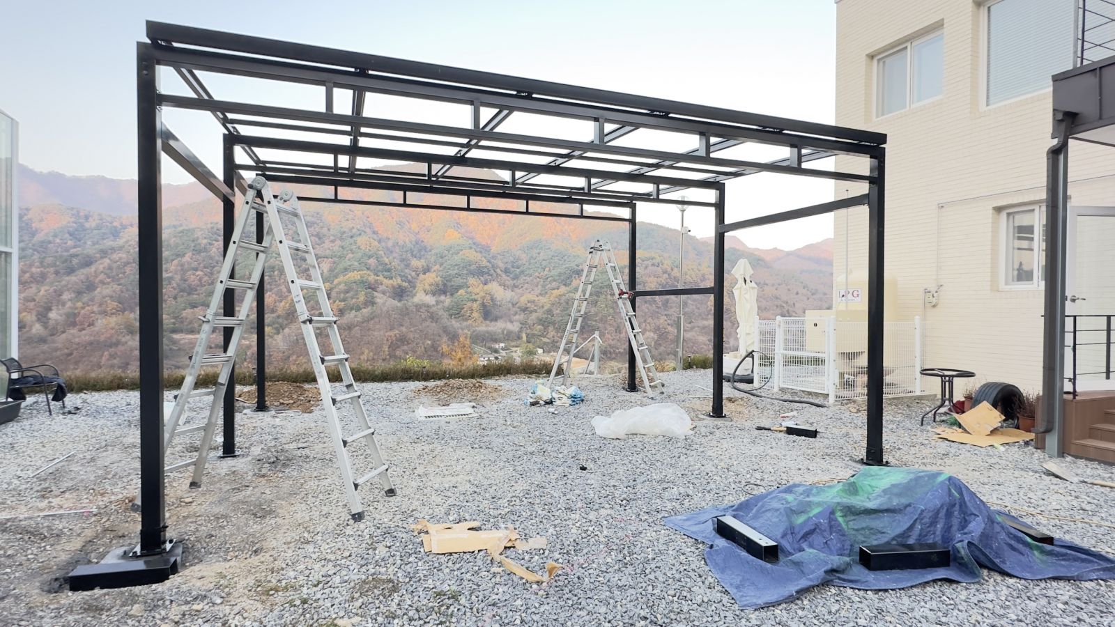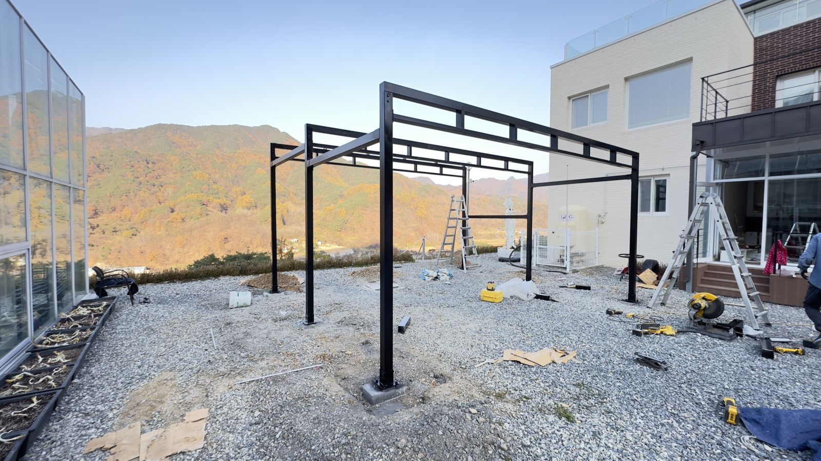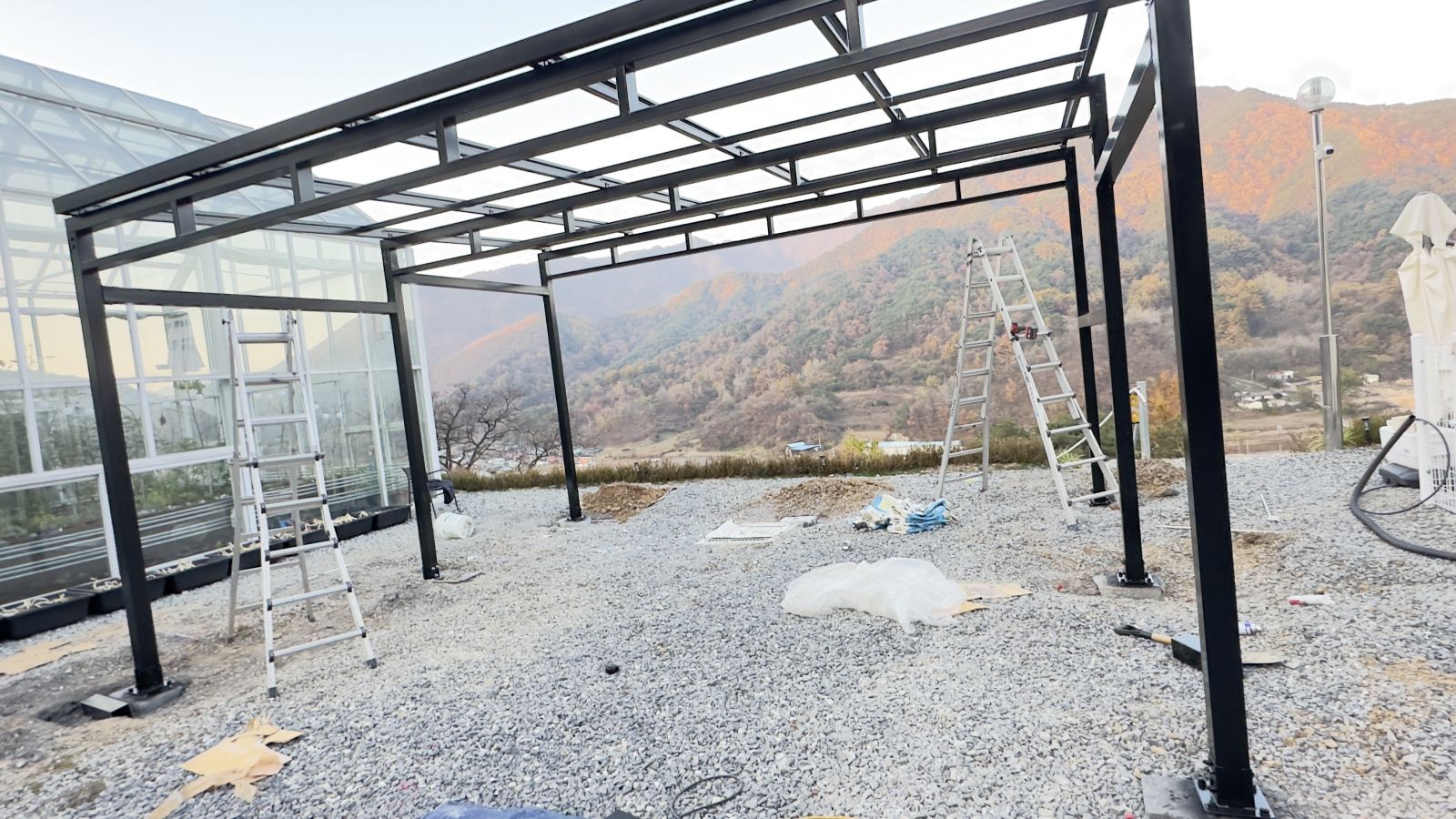 튼튼하게 기초작업을 완료하고 양면그라스모듈을 작업할 수 있도록 촘촘히 기둥 작업을 하게 됩니다. ![]()