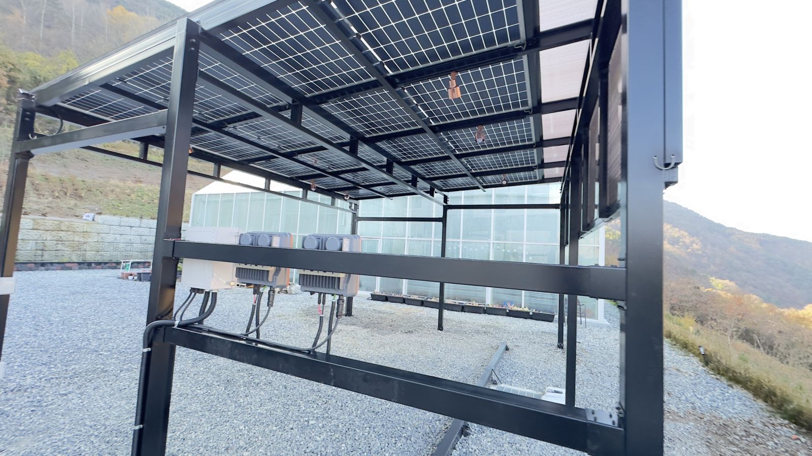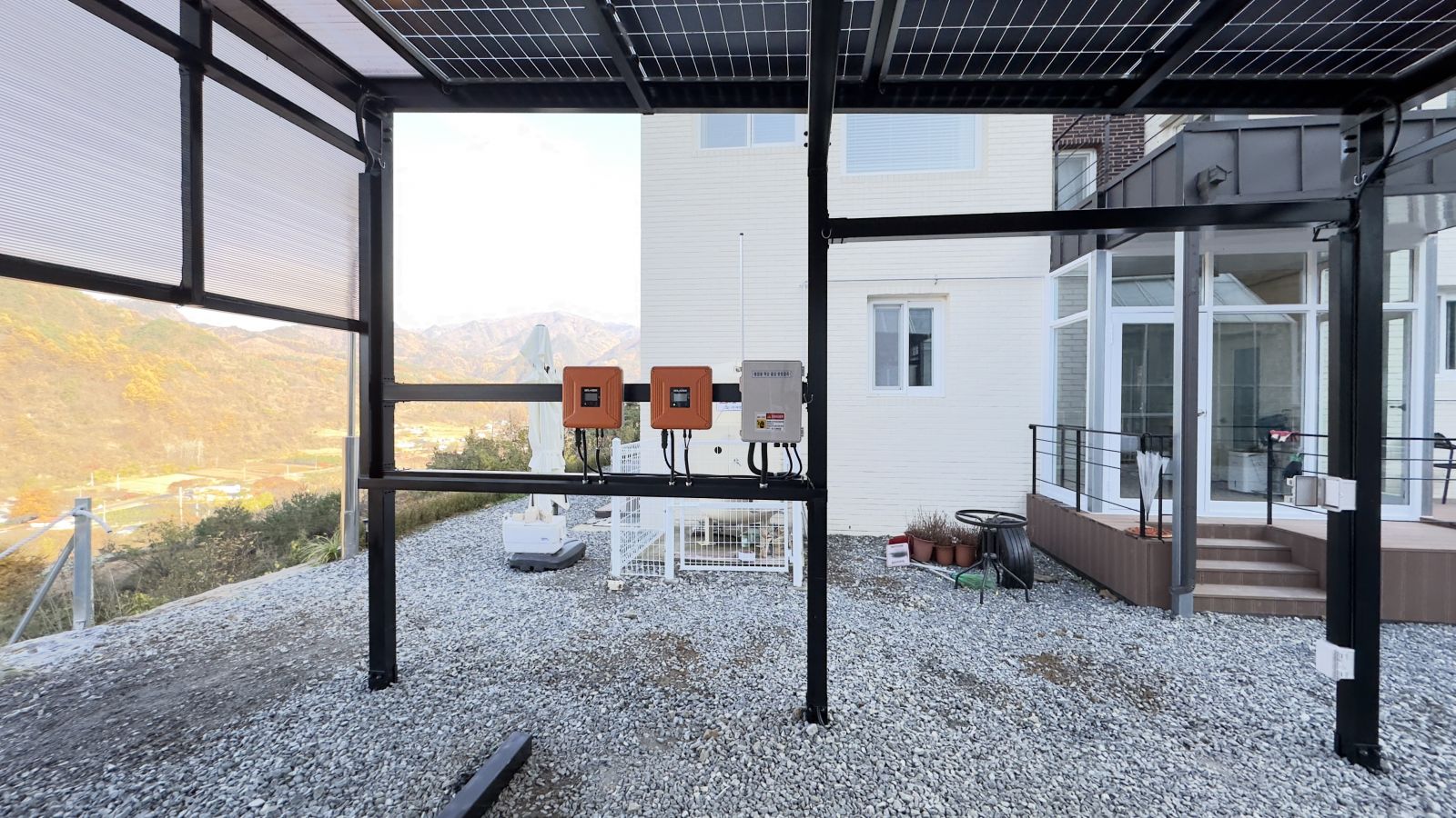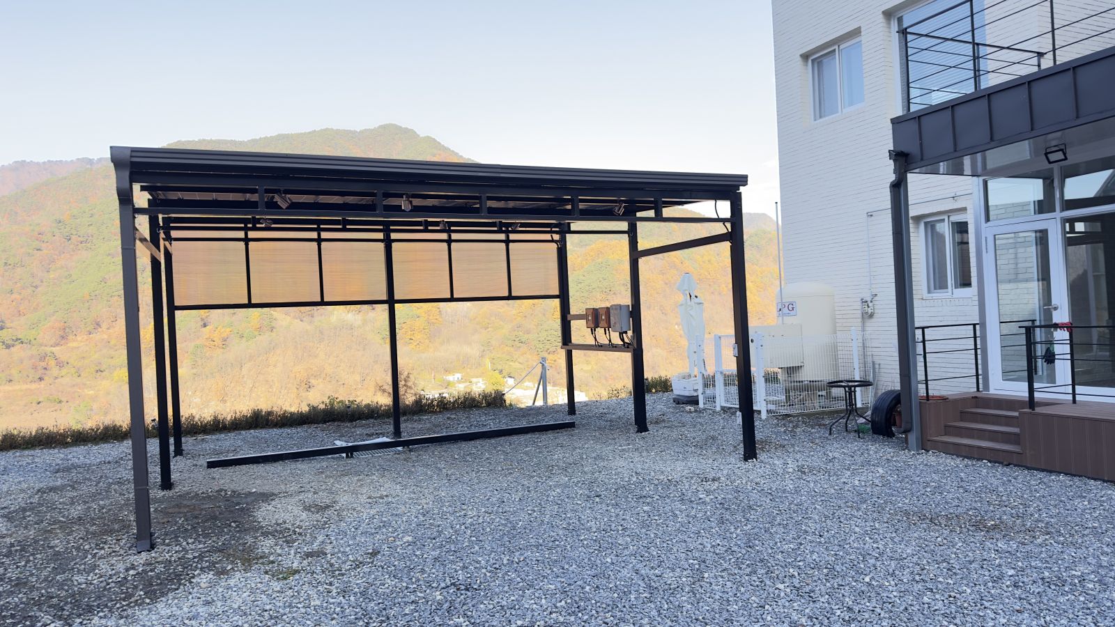 인버터는 태양광주차장 뒤쪽 벽에 설치가 되었습니다. 충북 단양군 현장에서는 5.5kW 요금상계거래 신청했습니다. 태양광 주차장 시공을 통해 에너지를 생산하고 전기요금 부담은 확실히 내려갑니다.