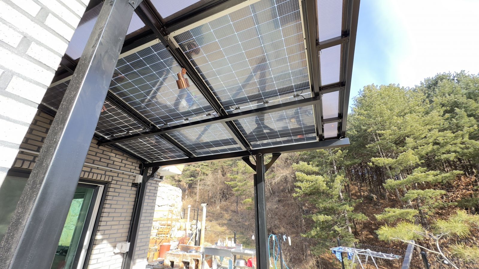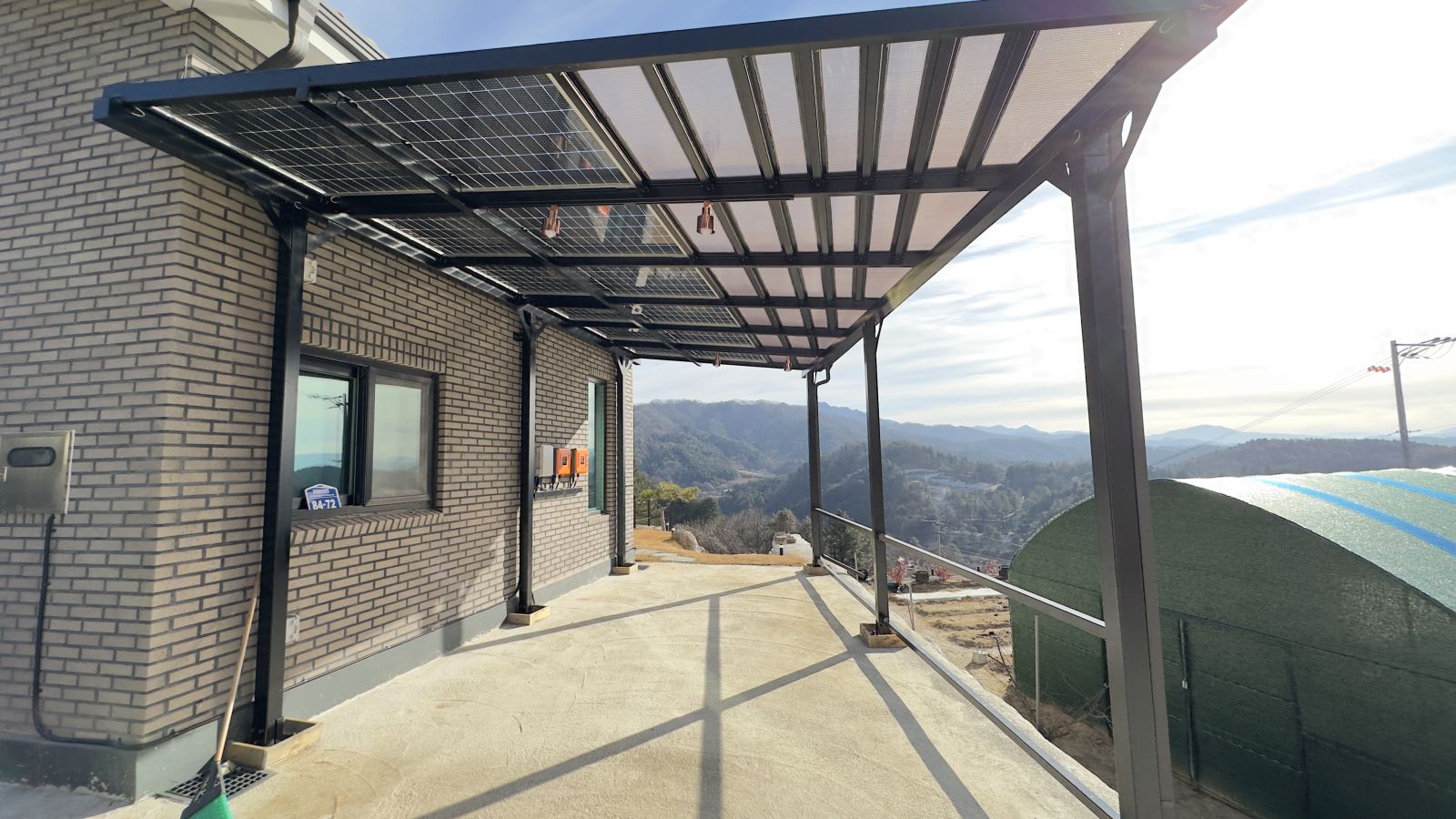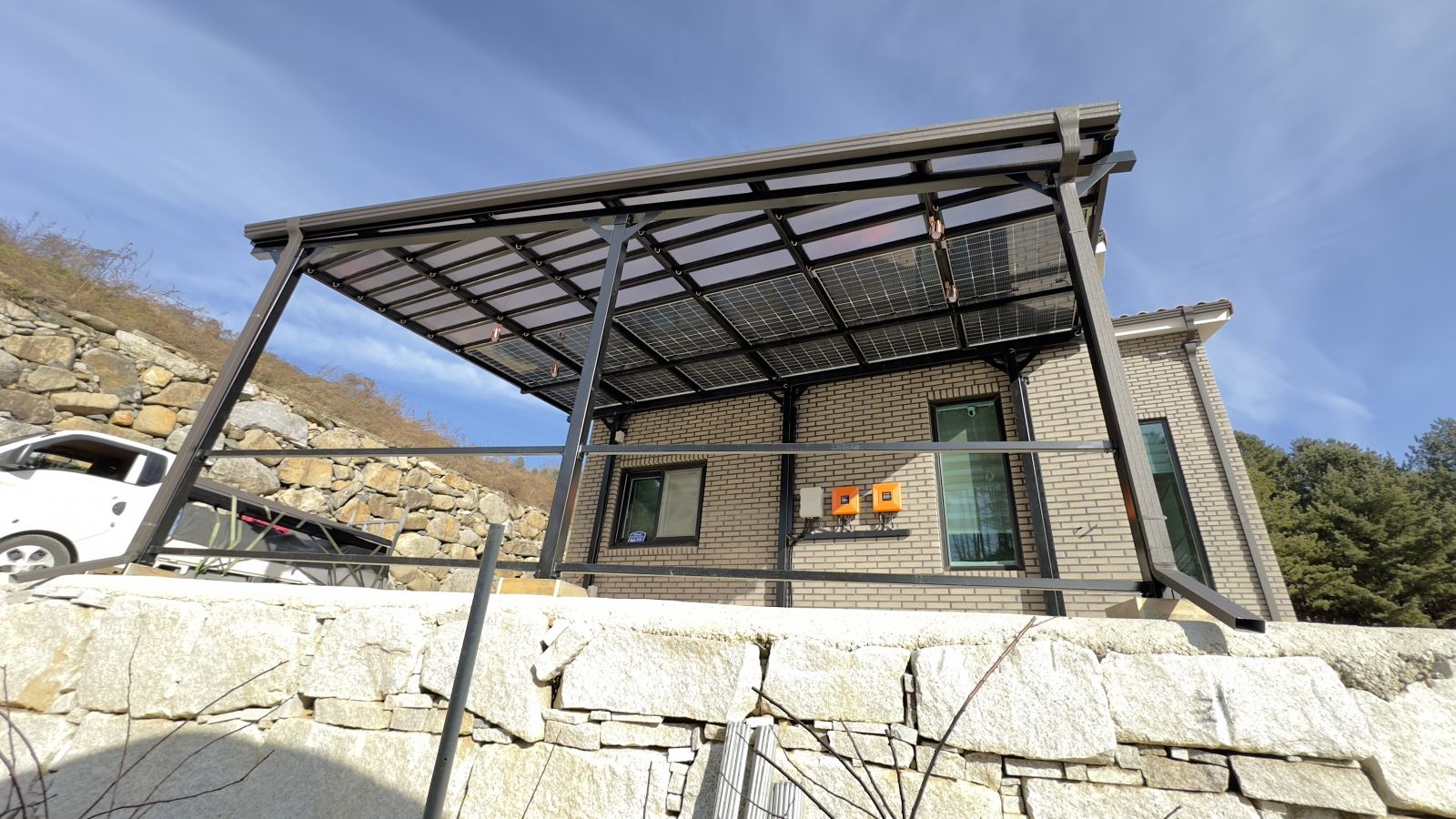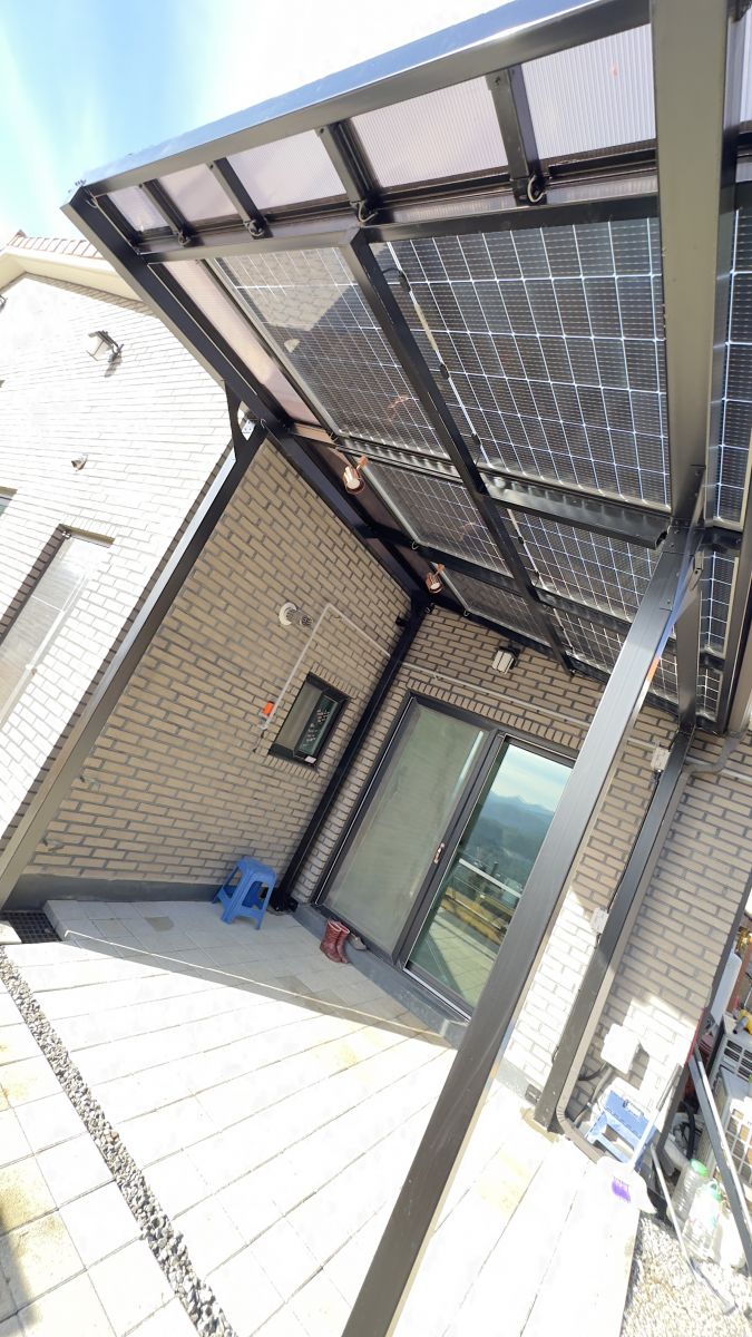 태양광캐노피 구조물 색상은 블랙으로 해서 더욱 세련된 이미지로 업그레이드 되어 집이 더 웅장해지고 가치가 올라갑니다. ![]() ![]()