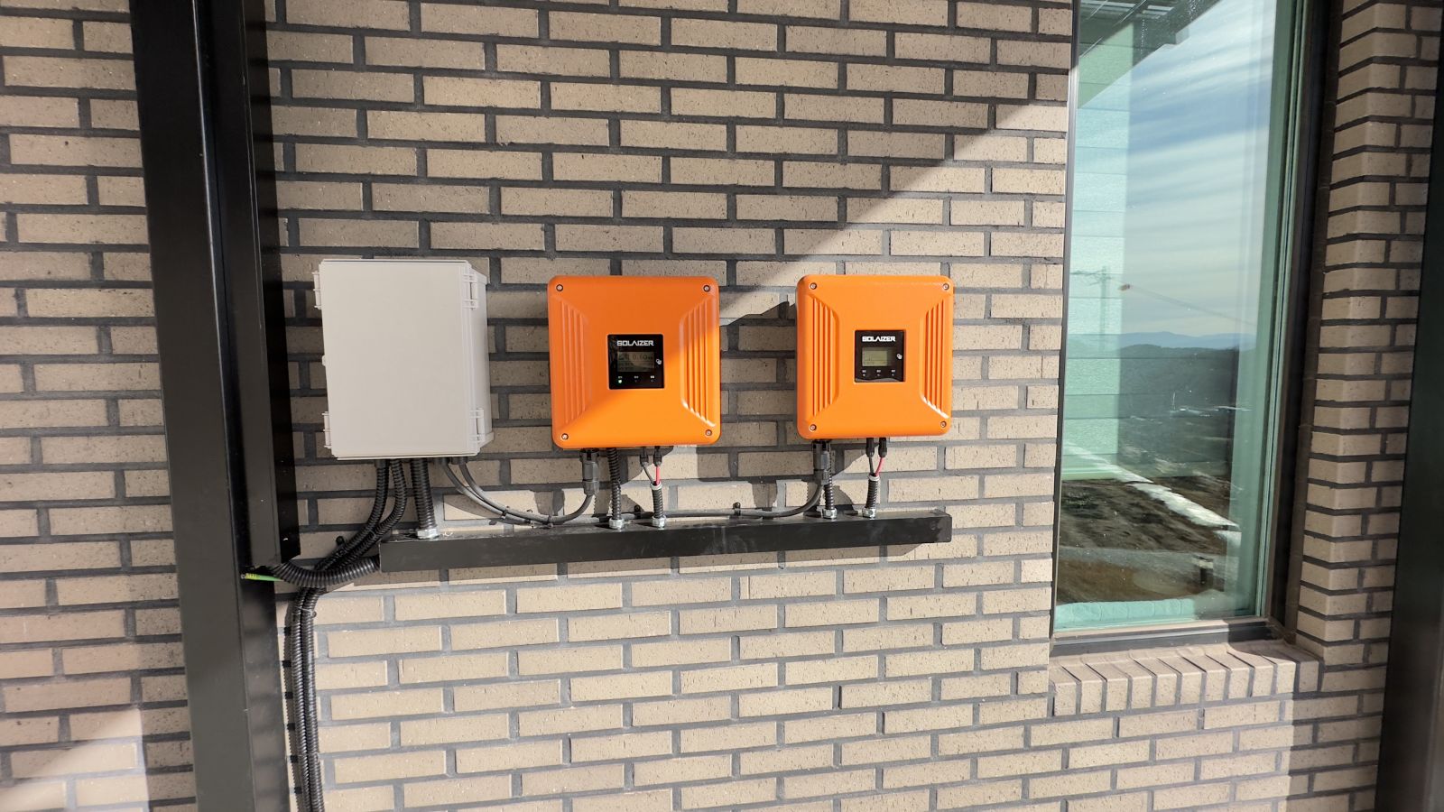 인버터는 주택 외벽에 설치를 합니다. 경기도 가평군 현장의 설비용량은 4.95kW로 한전에 요금상계거래 신청을 하고 한국전기안전공사의 사용전점검 신청까지 서류작업을 완료합니다. 태양광 캐노피 시공 후