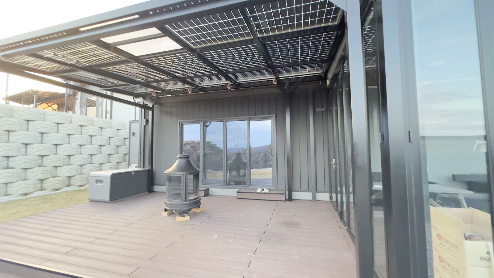저희 태웅솔라의 장점은 양면 모듈이라도 다 같은 모듈이 아니고 햇빛이 투과가 되는 유리모듈이라 일반 태양광보다 1.2배 정도 더 발전이 될 뿐만 아니라 셀과 셀사이에서 빛이 투과가 되면서 아래공간의 채광효과가 아주 탁월해서 디자인 태양광 모듈로써 많은 사랑을 받고 있는 양면유리 태양광입니다. ![]()