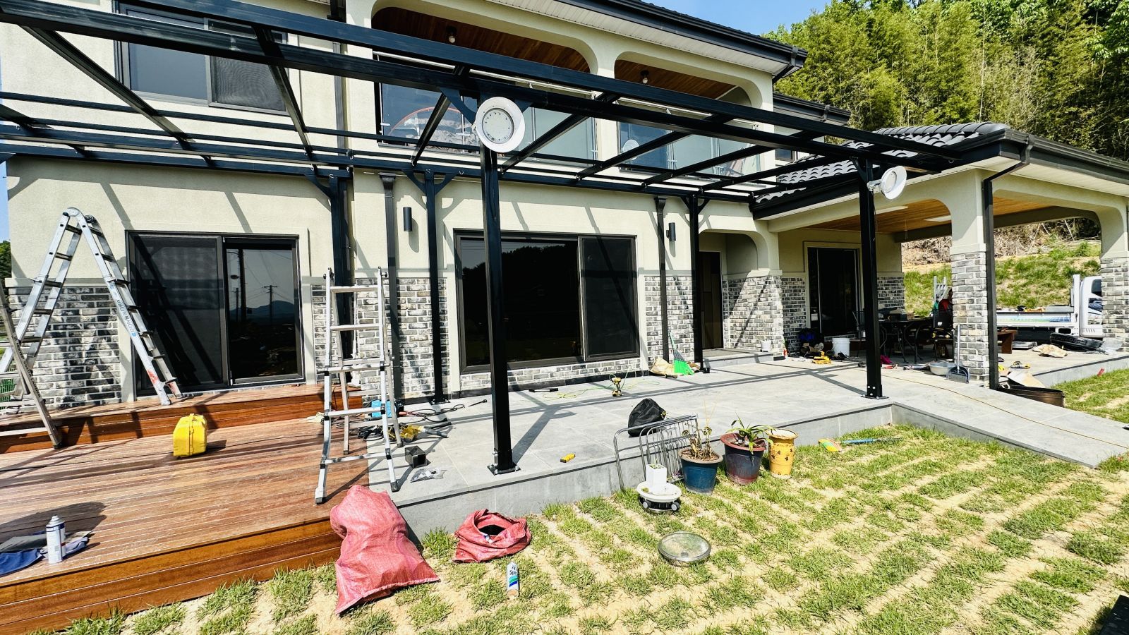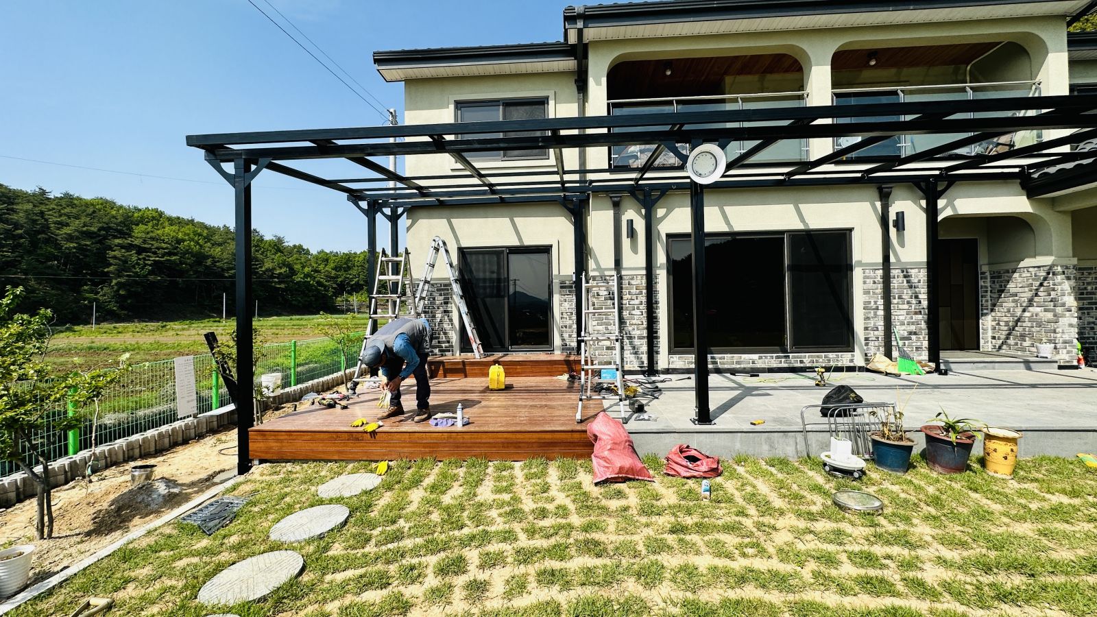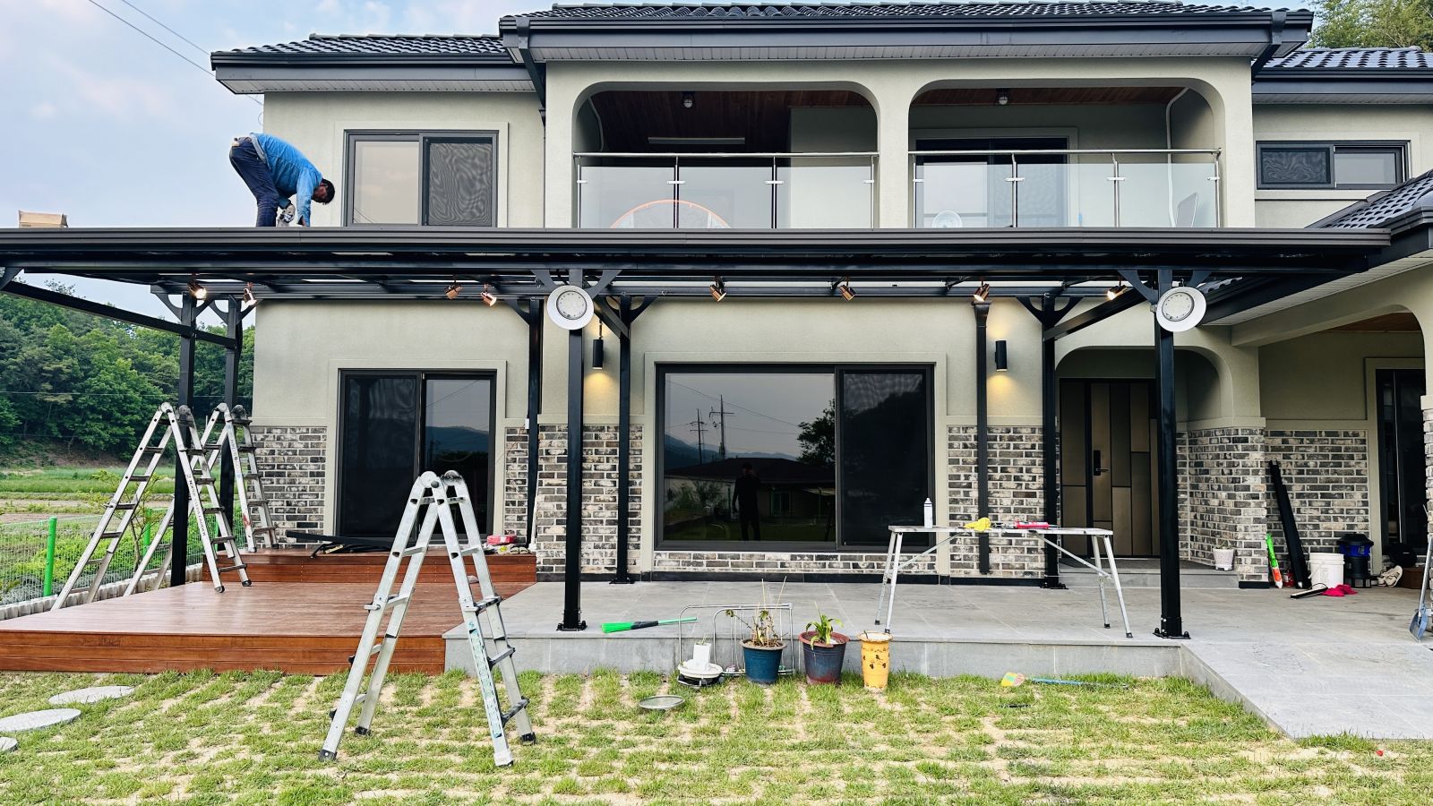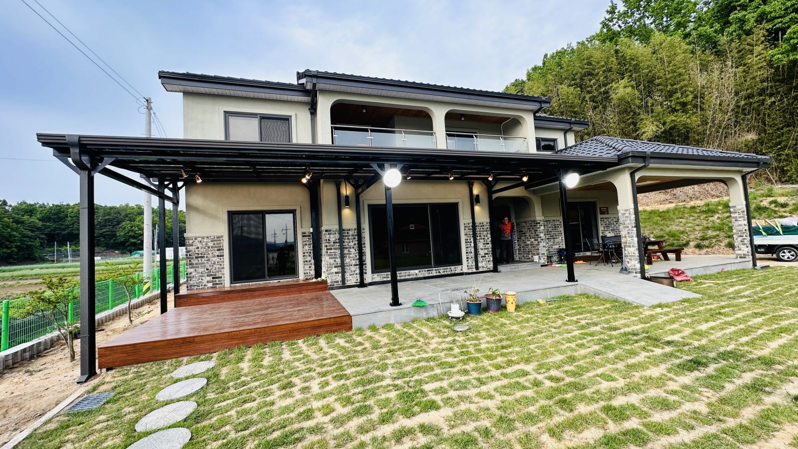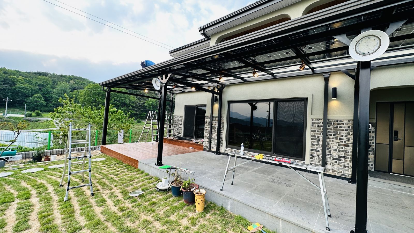 캐노피 아래 공간도 목재데크와 화강암으로 되어있는터라 더 자주 활용하시고 더워지는 여름 밤에도 시원하게 쓰시라고 고급레일등도 시공해드렸답니다. 이정도면 정말 흠이 없는 무결점 제품이네요! ![]()