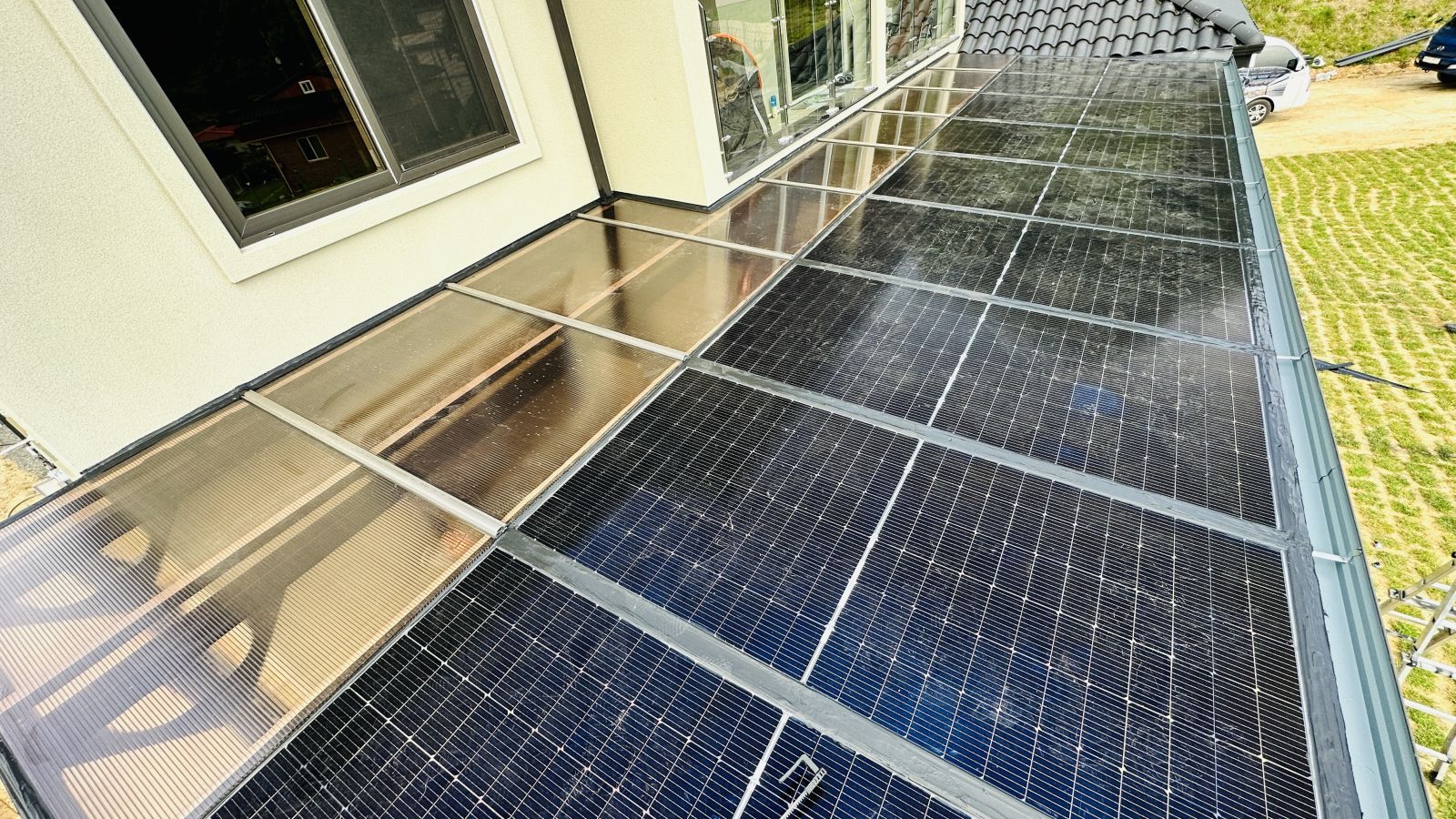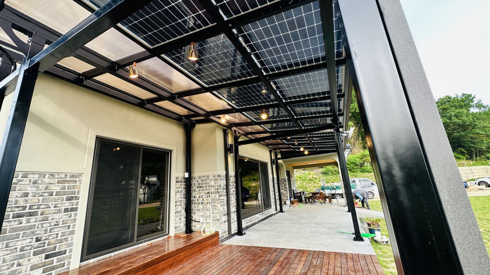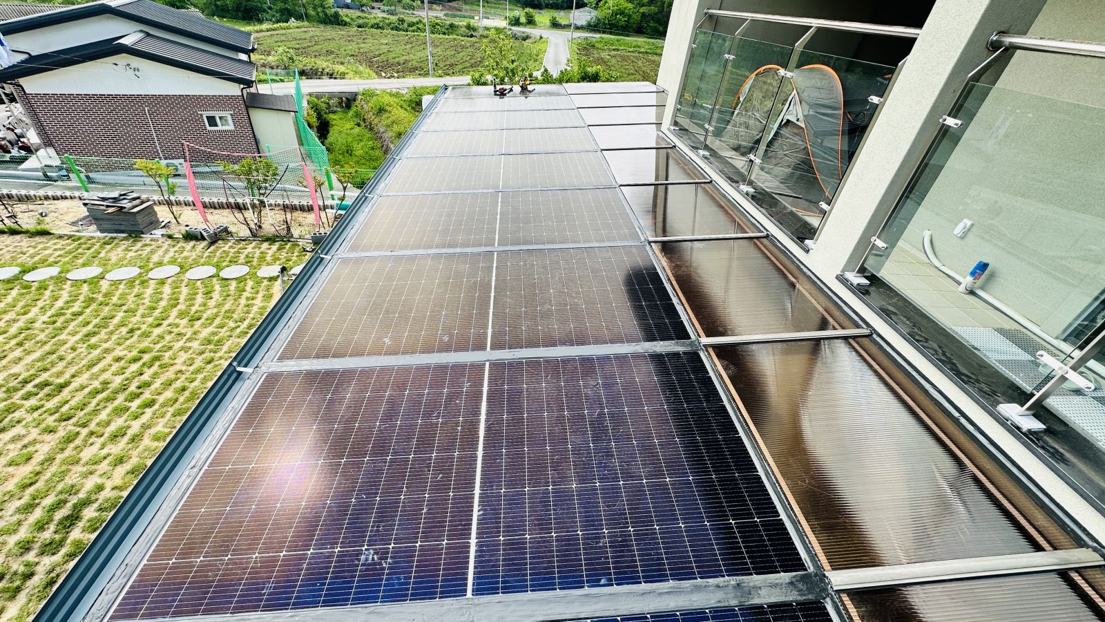 그런 이유로 꼼꼼하신 건축주분이 렉산캐노피부터 어닝 기타 등등 햇볕을 막아줄 수 있는 대부분의 것들을 모두 검토하신 후에 내린 결론이 바로 단독주택 태양광이었답니다. ![]()