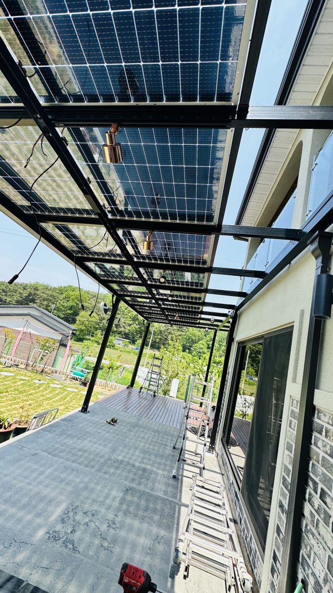또 이 양면그라스모듈은 햇볕을 100%차단해서 단독주택태양광 아래쪽을 어둡게 하는 것이 아니고 적절한 조도로 투과가 되도록 함으로써 은은하고도 밝은 느낌으로 캐노피 아래 공간을 사용하실 수 있답니다. ![]()