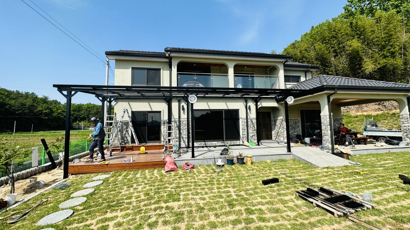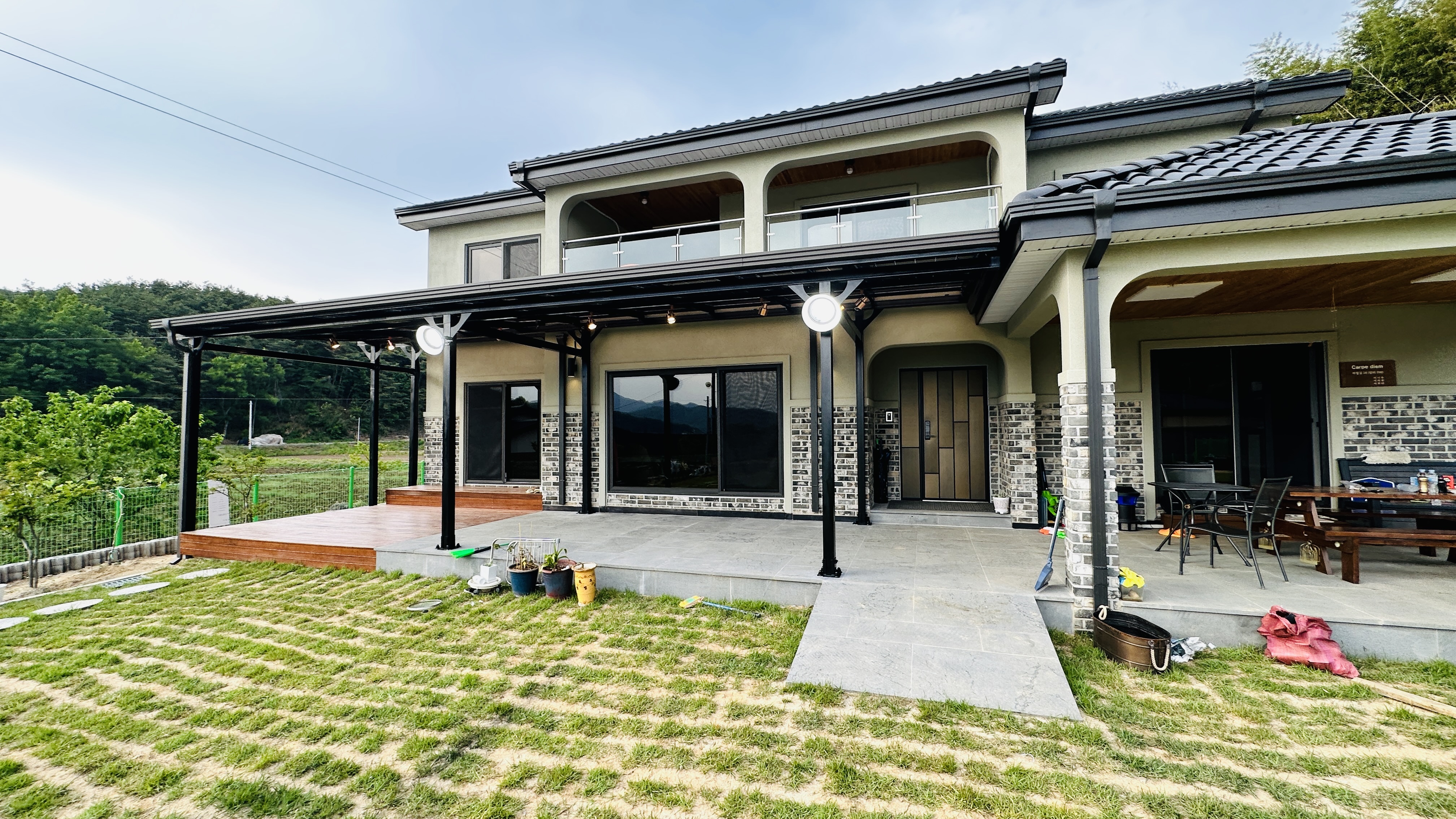 1층의 오른쪽 부분은 아예 앞쪽으로 지붕이 있는 쉘터처럼 시공을 하셔서 홈카페처럼 이용을 하고 계셨답니다. ![]()