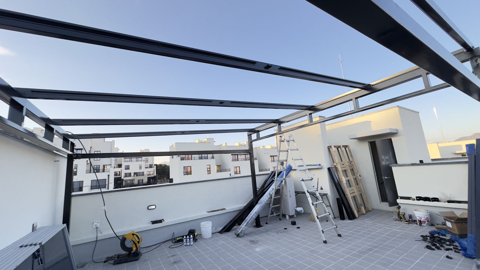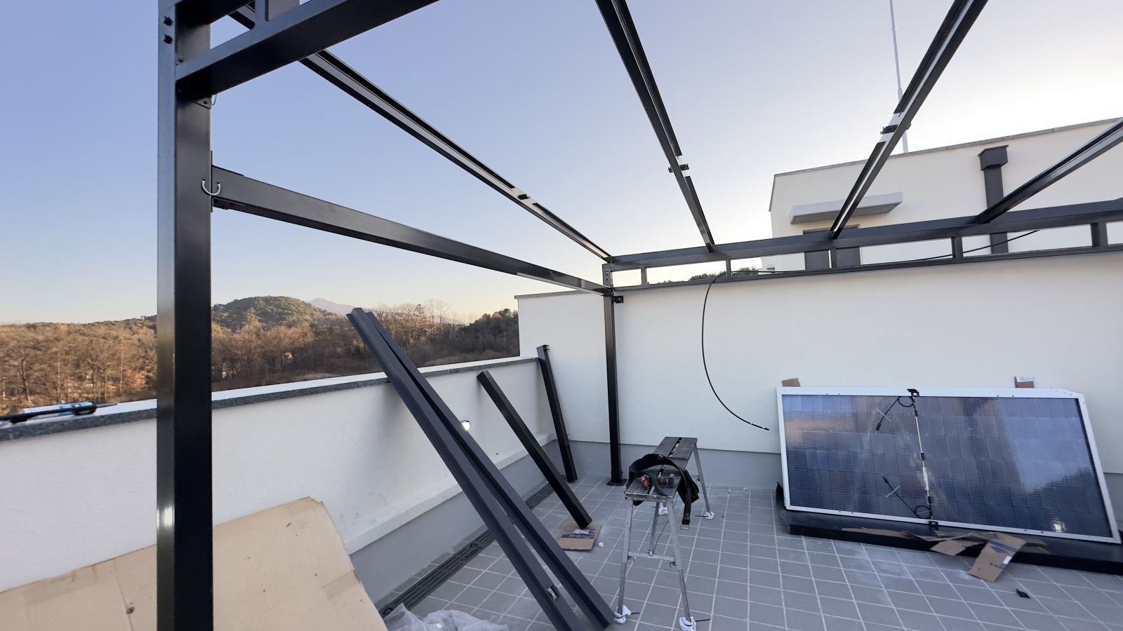 현장 실측을 통해서 사이즈와 디자인을 넣어서 3D동영상을 제작해서 고객님께 바로 보여드립니다. 무료견적으로 충분히 의견을 조율한 후 시공을 결정합니다. 춘천시 현장은 테라스에 태양광캐노피와 옥상에 태양광파고라를 함께 시공결정 하셨습니다. 특수분체 구조물 제작 / 시공