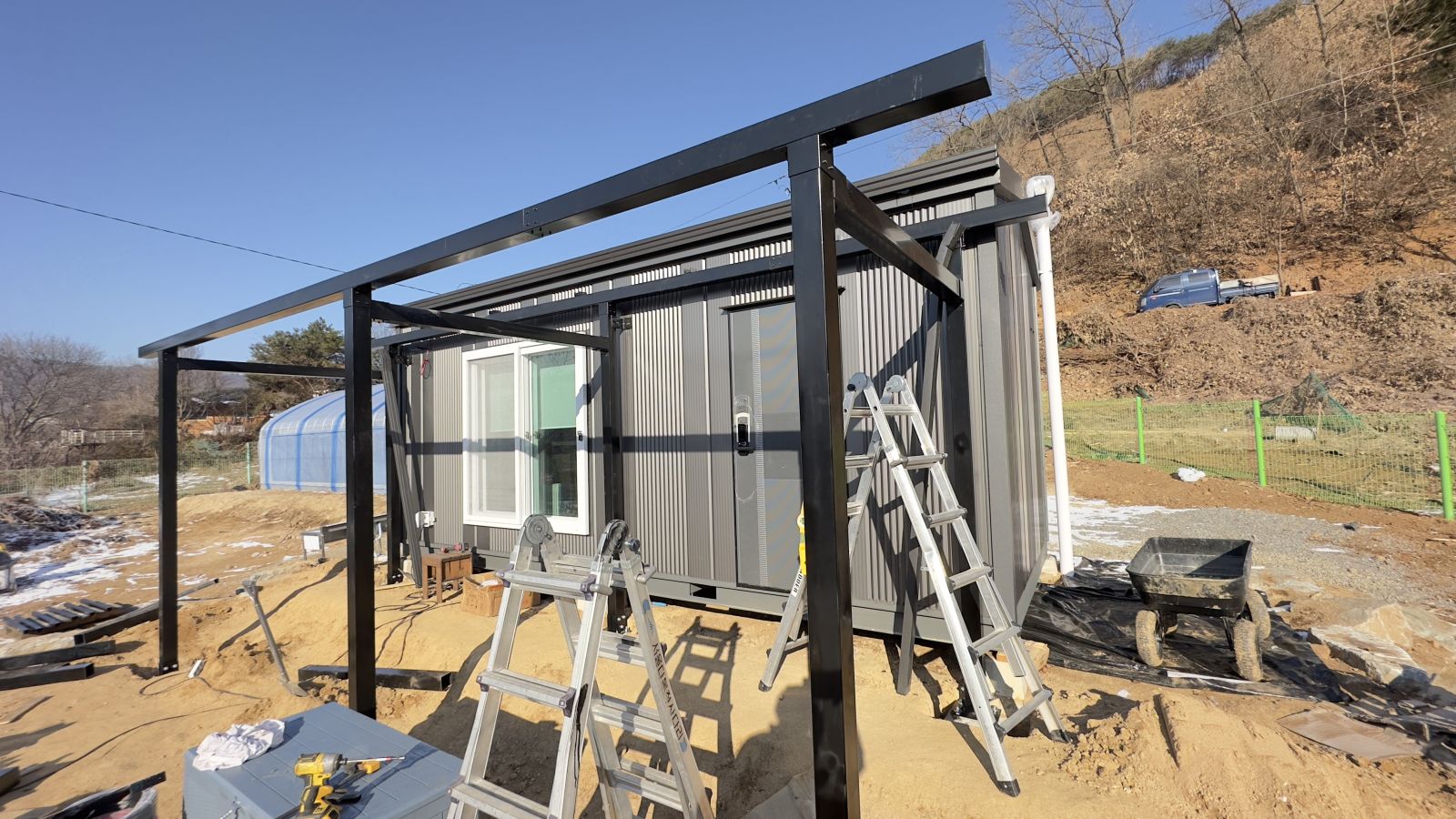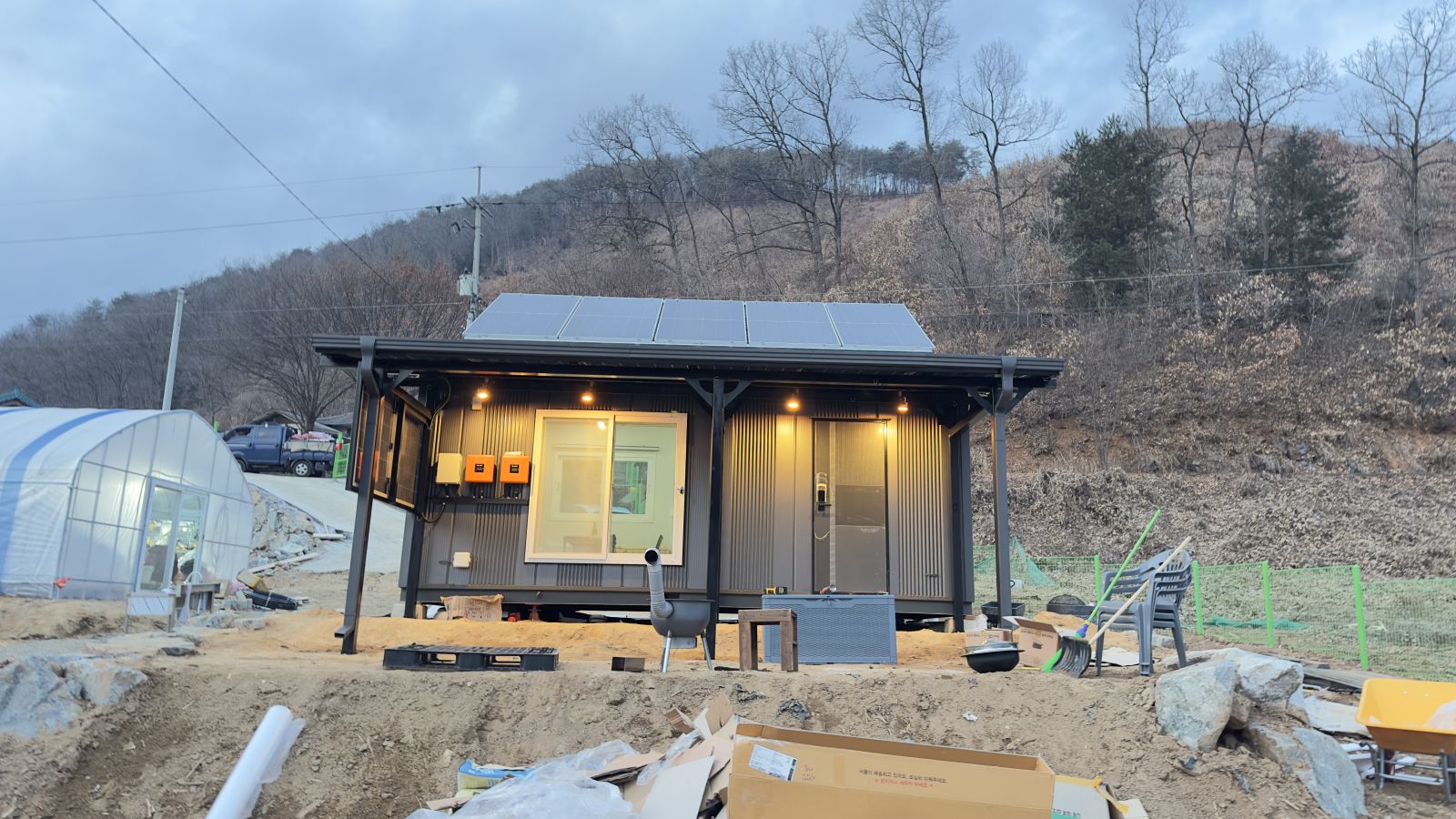시공 전과 후의 농막 모습이 완전히 다르죠?? 태양광 농막으로 시공해서 전기 생산까지 알차게 하고 그냥 컨테이너만 있던 농막에서 럭셔리한 태양광농막이 되었습니다. ![]()