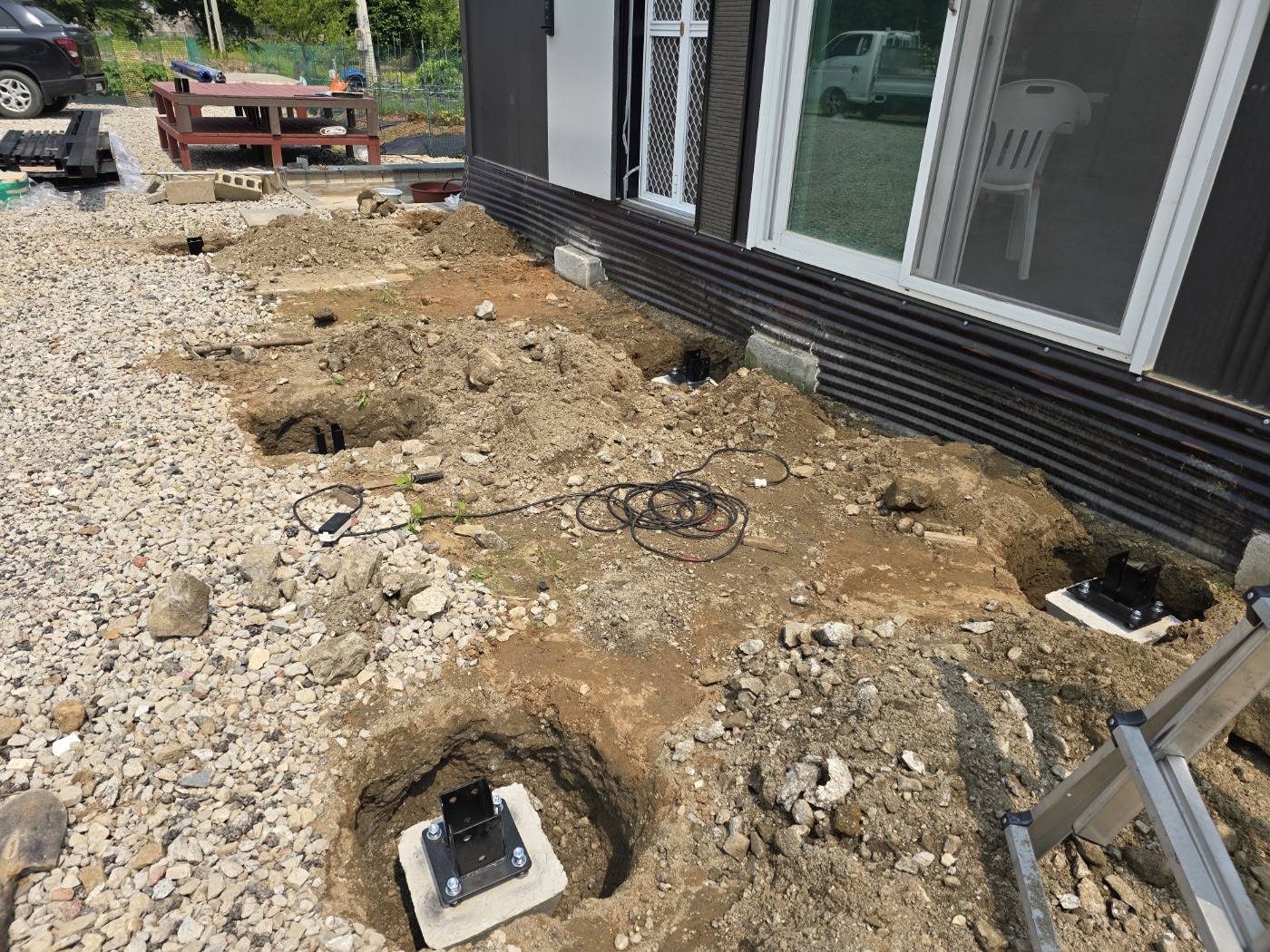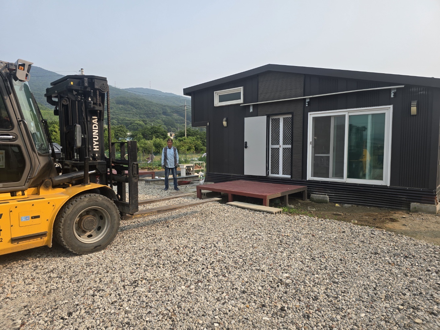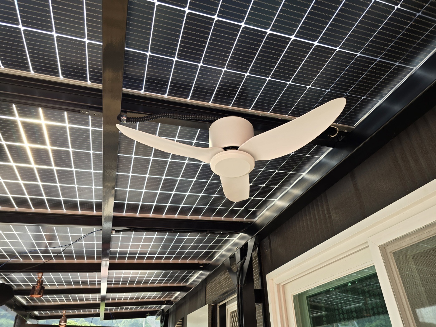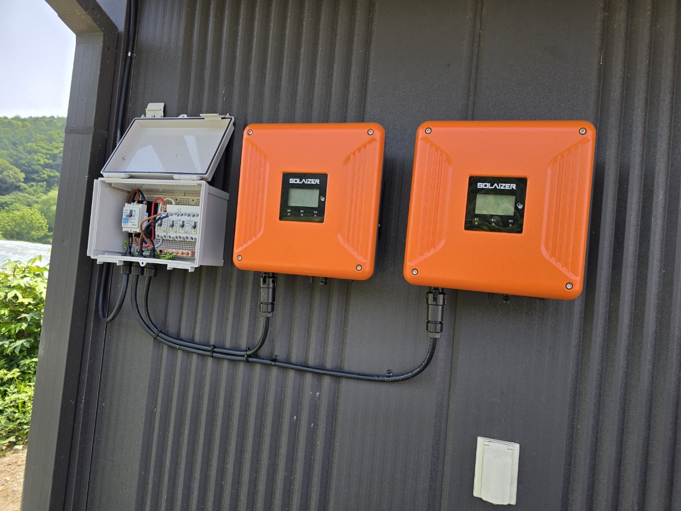그리고 농막 정면에는 특별한 완전 방수 태양광 캐노피를 설치했습니다. 이렇게 두 가지 방식을 조합해서 농막에 필요한 전기를 충분히 생산할 수 있도록 하였습니다. ![]()