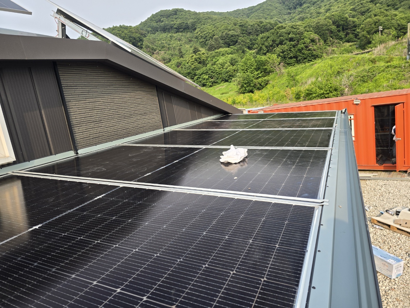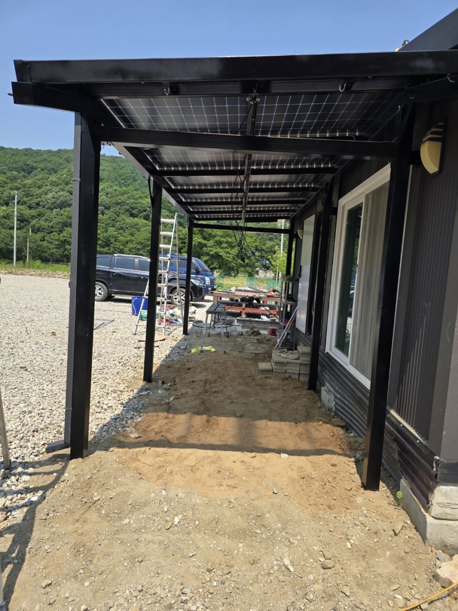 이 농막에는 지붕형 태양광과 태양광 캐노피를 조합해서 총 7kW 규모의 태양광 시스템이 설치되었답니다. ![]()