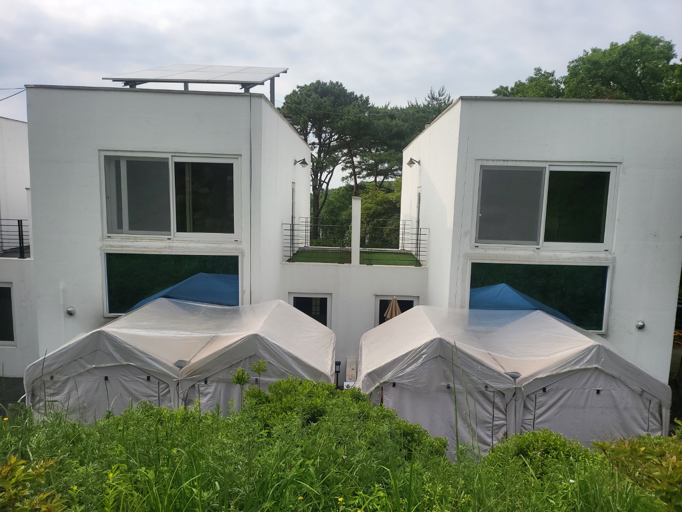 인천시 강화군에서 태양광 캐노피 문의를 주셨습니다. 바다가 가깝고 저수지가 근처에 있는 깔끔한 펜션 건물입니다. 태양광 캐노피 시공 전
