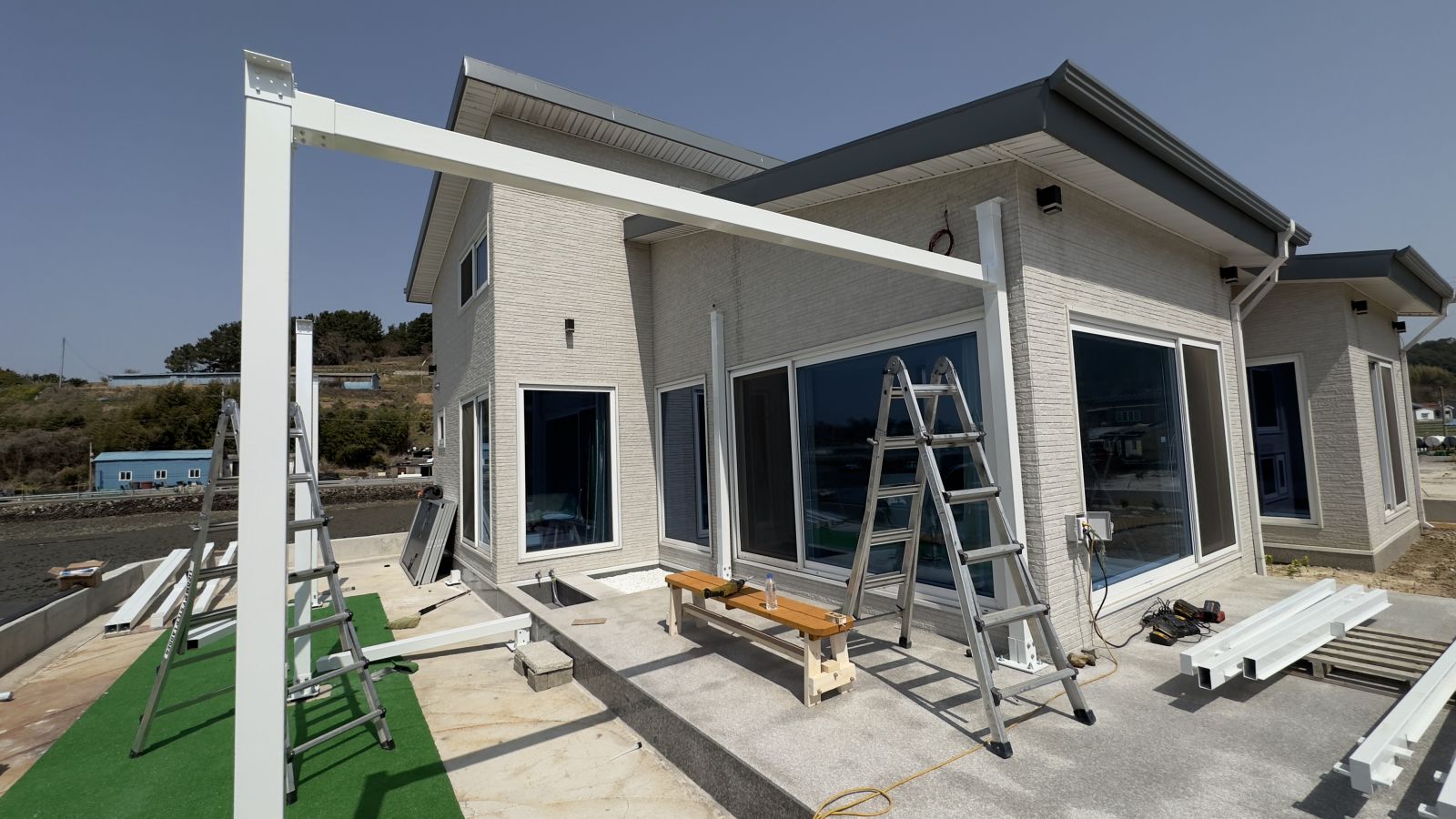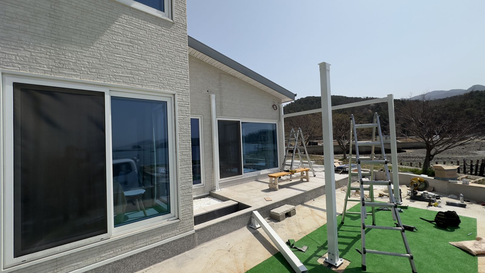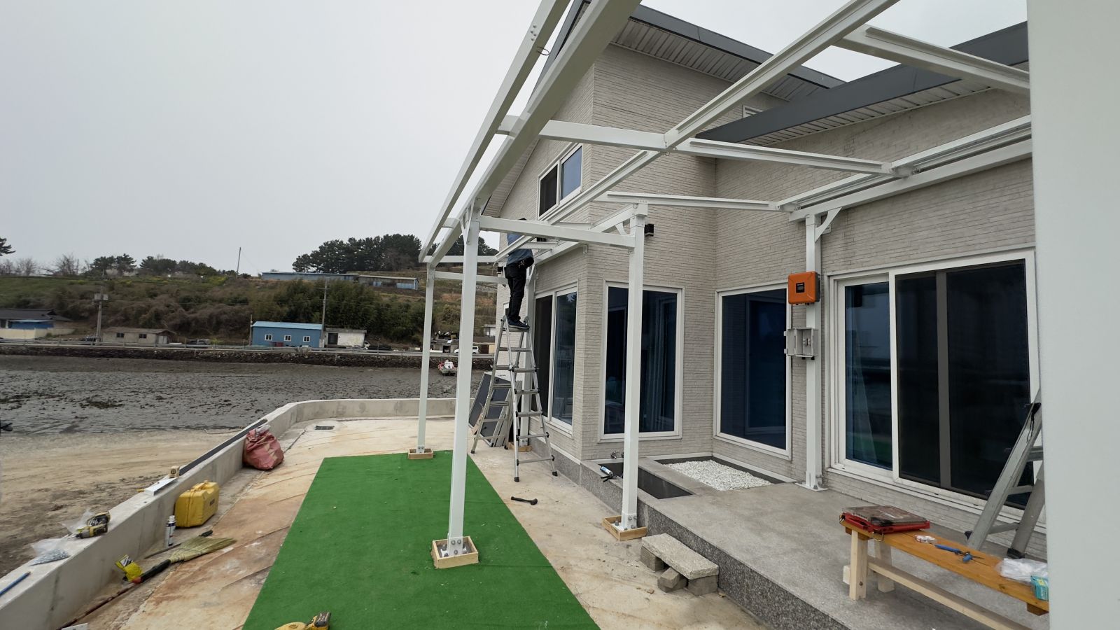 이 뜨거운 햇살에 눈을 제대로 뜰 수 없을 정도입니다. 그늘막이 필요함을 절감합니다. 남해의 전원주택은 바로 옆이 바다로 연결되는 곳이었습니다. 정말 멋진 풍경이죠~ 대신 바람이 많고, 햇살이 너무 강력하게 많이 들어옵니다. 태웅솔라는 무료견적을 해서 사이즈를 실측한 다음 3D동영상을 제작합니다. 시공 후의 모습을 예측할 수 있으니 고객님의 만족도가 매우 높습니다. ![]()