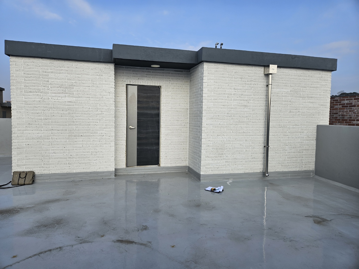 충북 청주시의 건물 옥상 모습입니다. 보통 옥상들 모습이죠~ 옥상은 보통 이렇게 넓게 비어져 있습니다. 옥상 출입문 쪽에 태양광 파고라 설치를 의뢰하셨습니다. 태양광 파고라 3D동영상 무료견적