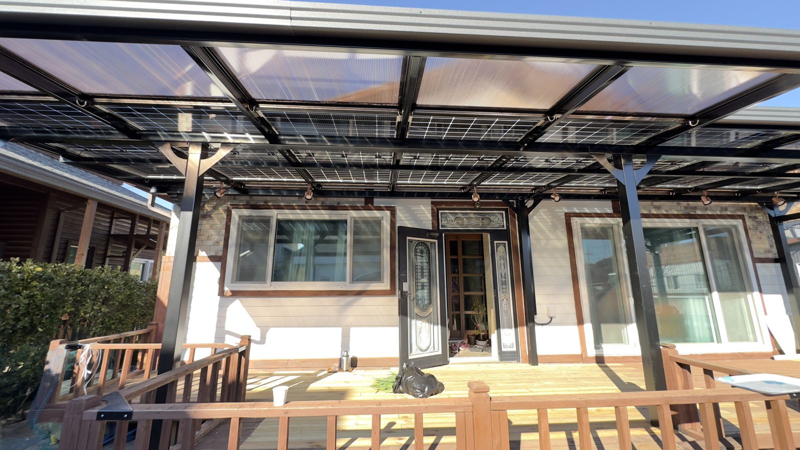시공 전과 후의 주택의 모습이 완전히 다르죠?? 캐노피 디자인 태양광으로 시공을 하시면 분체도장의 구조물과 더불어 전원주택이 확실히 더 살아나는 그런 느낌을 받으실 겁니다.